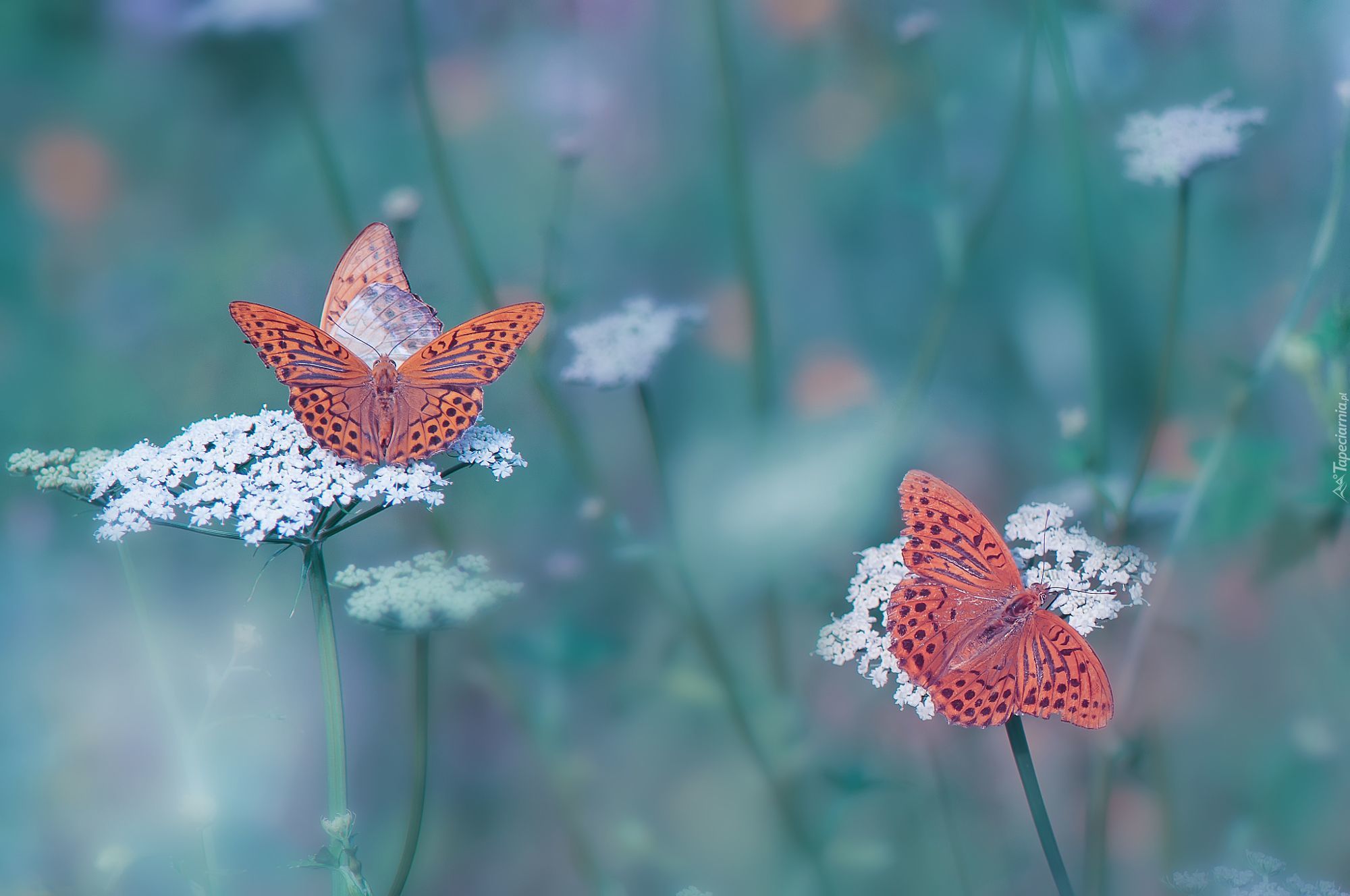 Edytor tapety: Perłowce malinowce na białych kwiatach