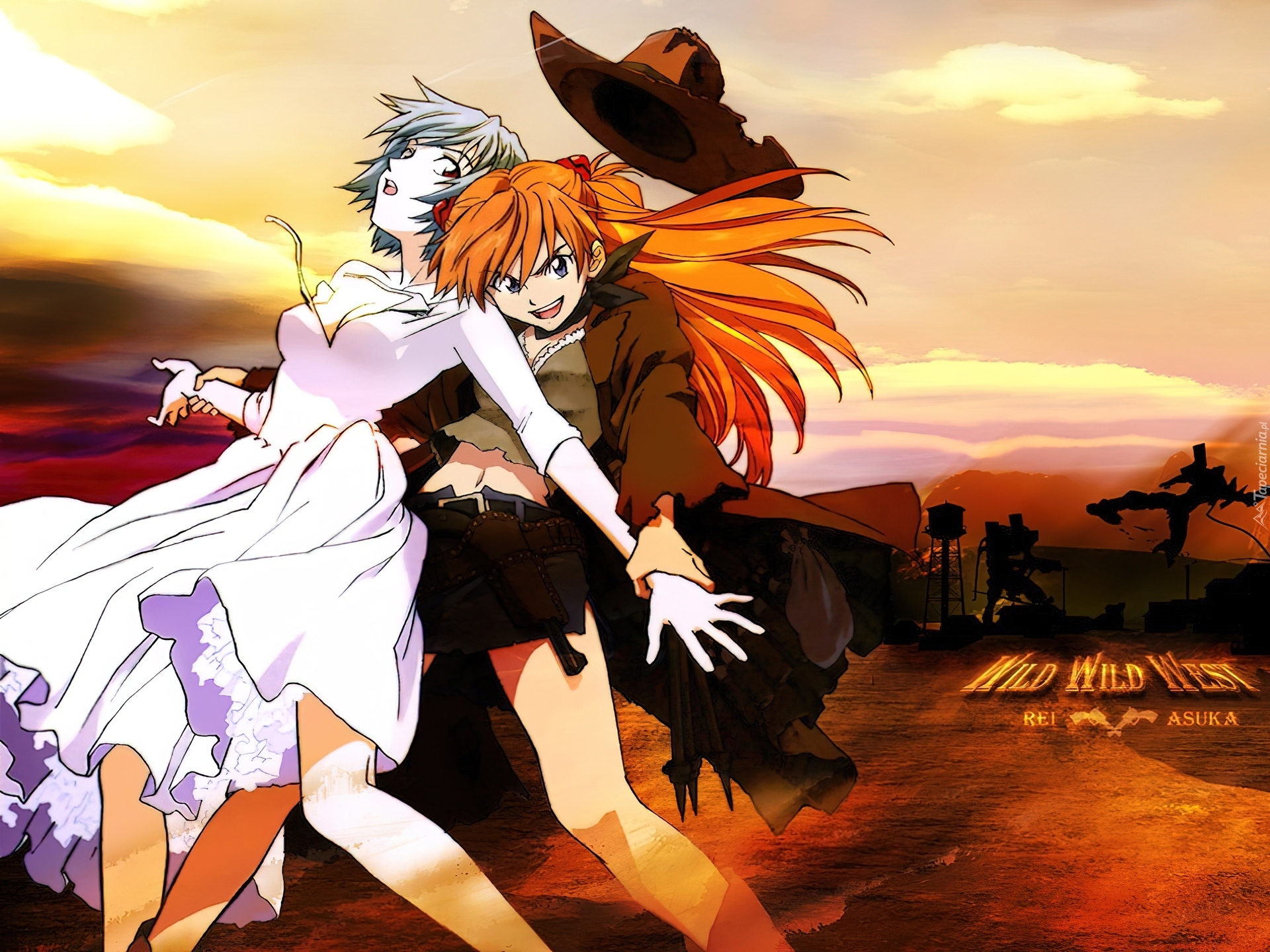 Edytor tapety: Neon Genesis Evangelion, zachód, kobiety, kapelusz