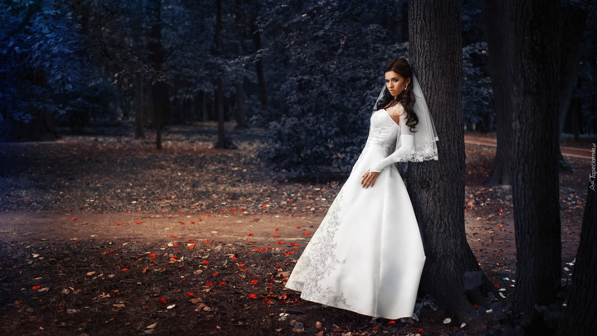 Edytor tapety: Panna młoda podczas sesji zdjęciowej w lesie