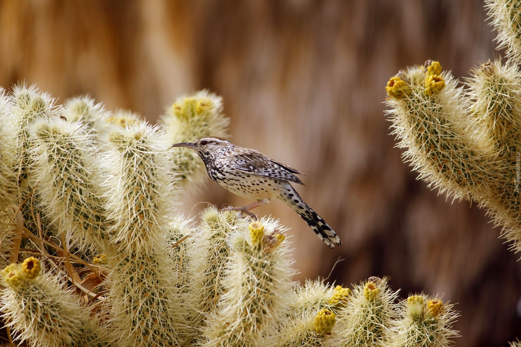 Edytor tapety: Strzyż kaktusowy przysiadł na kaktusie