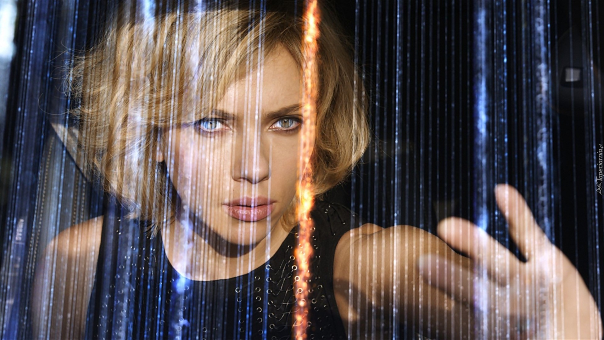 Edytor tapety: Scarlett Johansson ogląda przez szybę padajacy deszcz