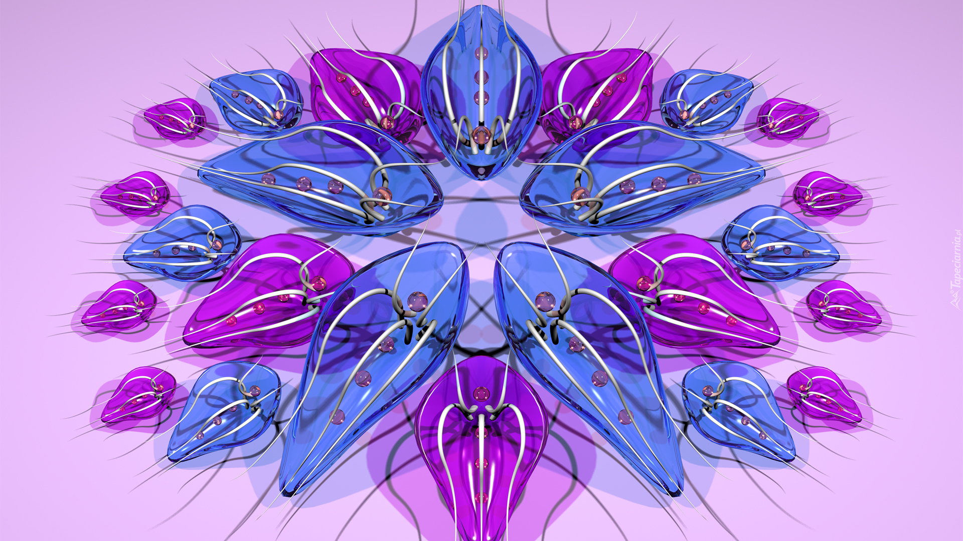 Edytor tapety: Szklany dwukolorowy kwiat w grafice 3D