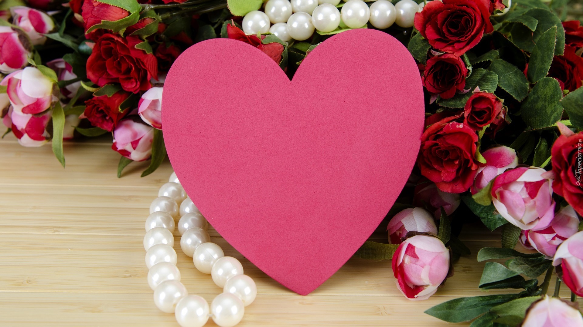 Edytor tapety: Perły i róże z walentynkowym sercem