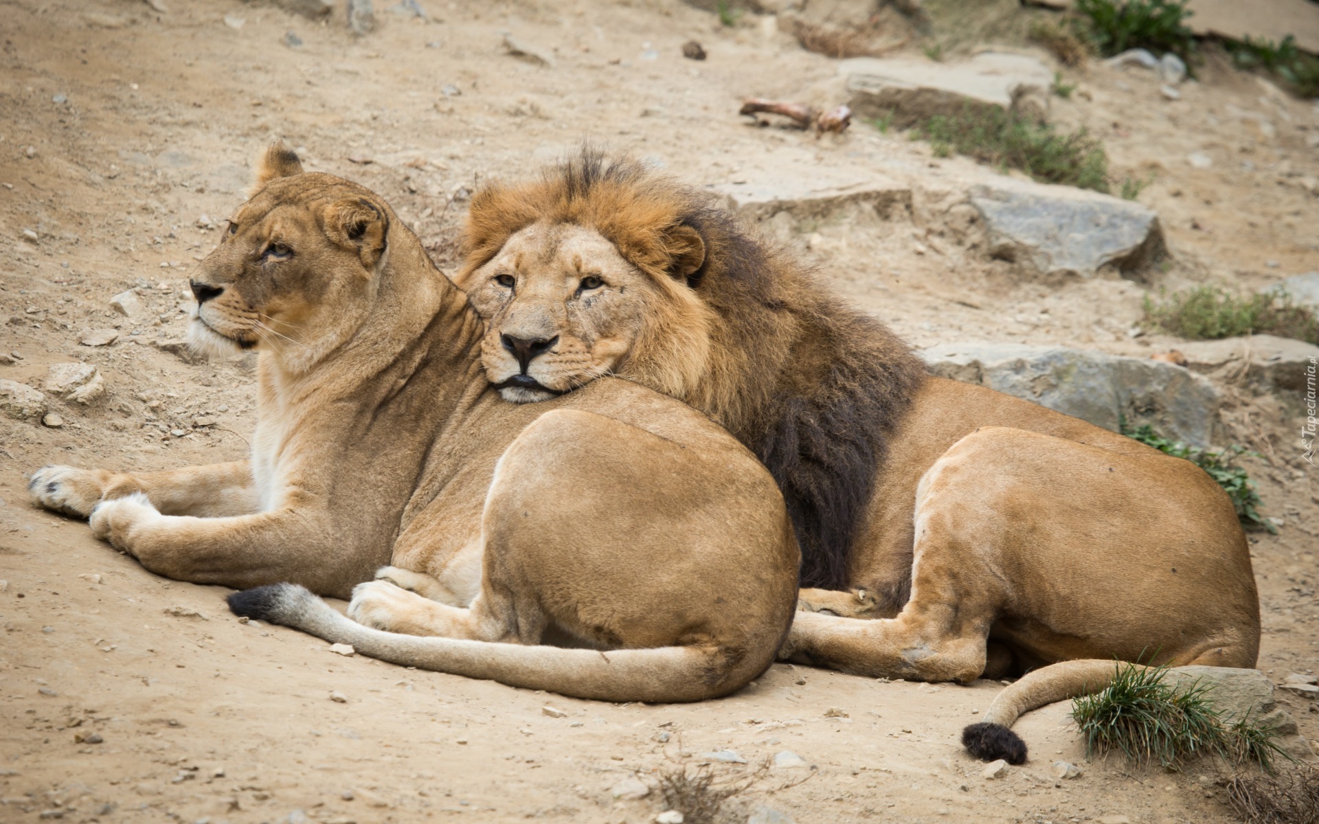 Edytor tapety: Lew przytulony do swojej partnerki lwicy