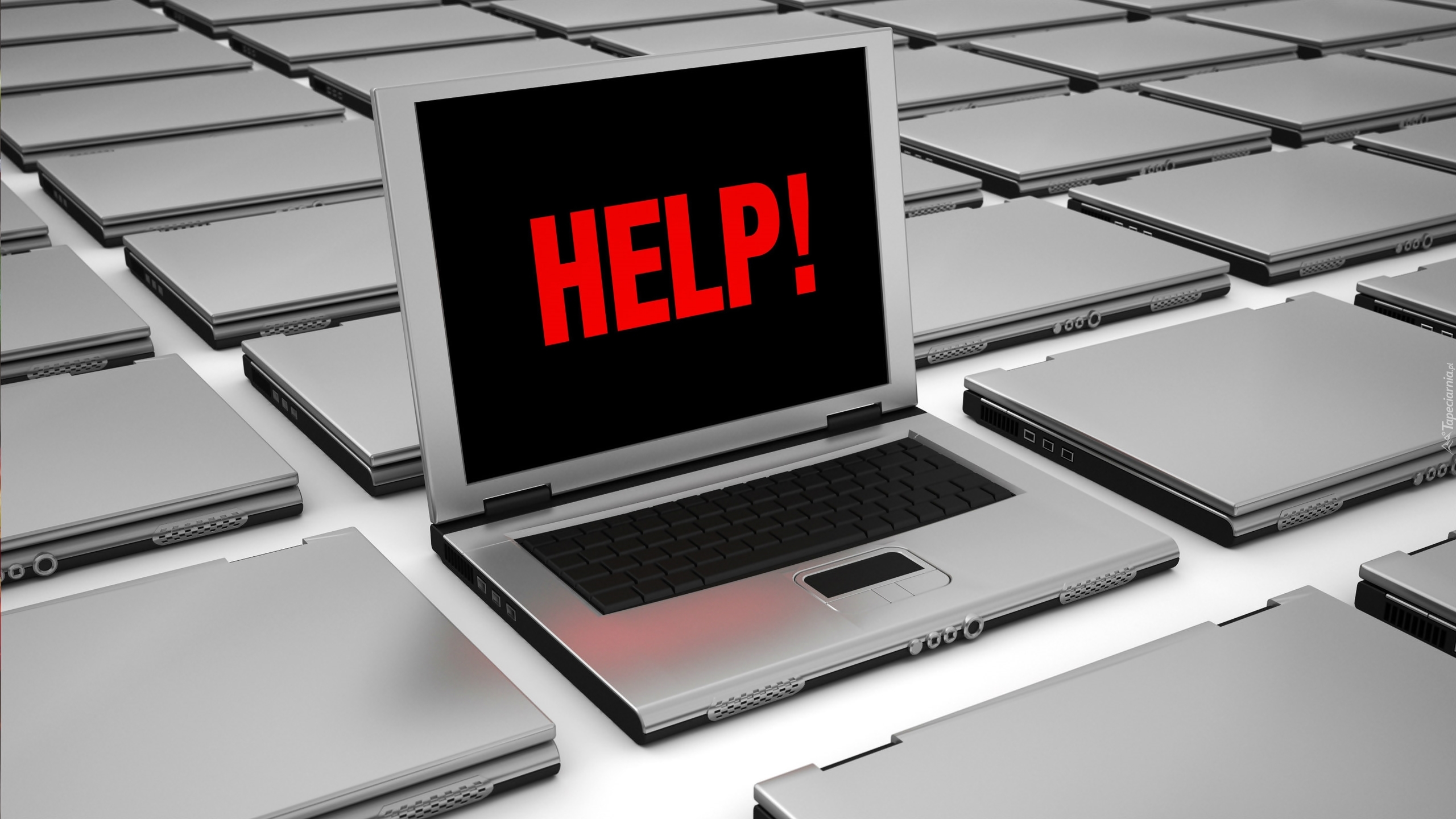 Edytor tapety: Laptop z napisem help w grafice 3D