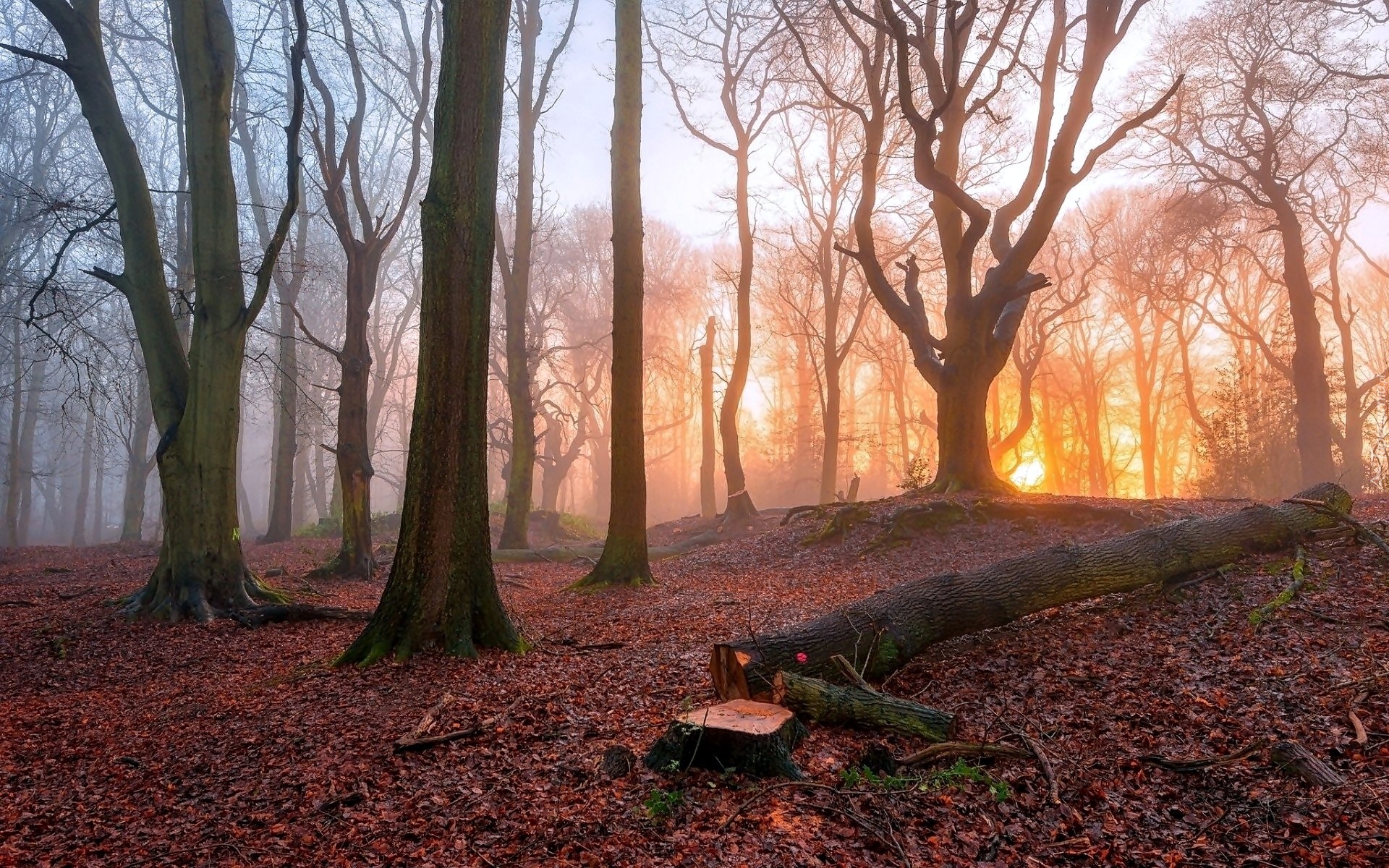 Edytor tapety: Jesienny las w świetle zachodzącego słońca