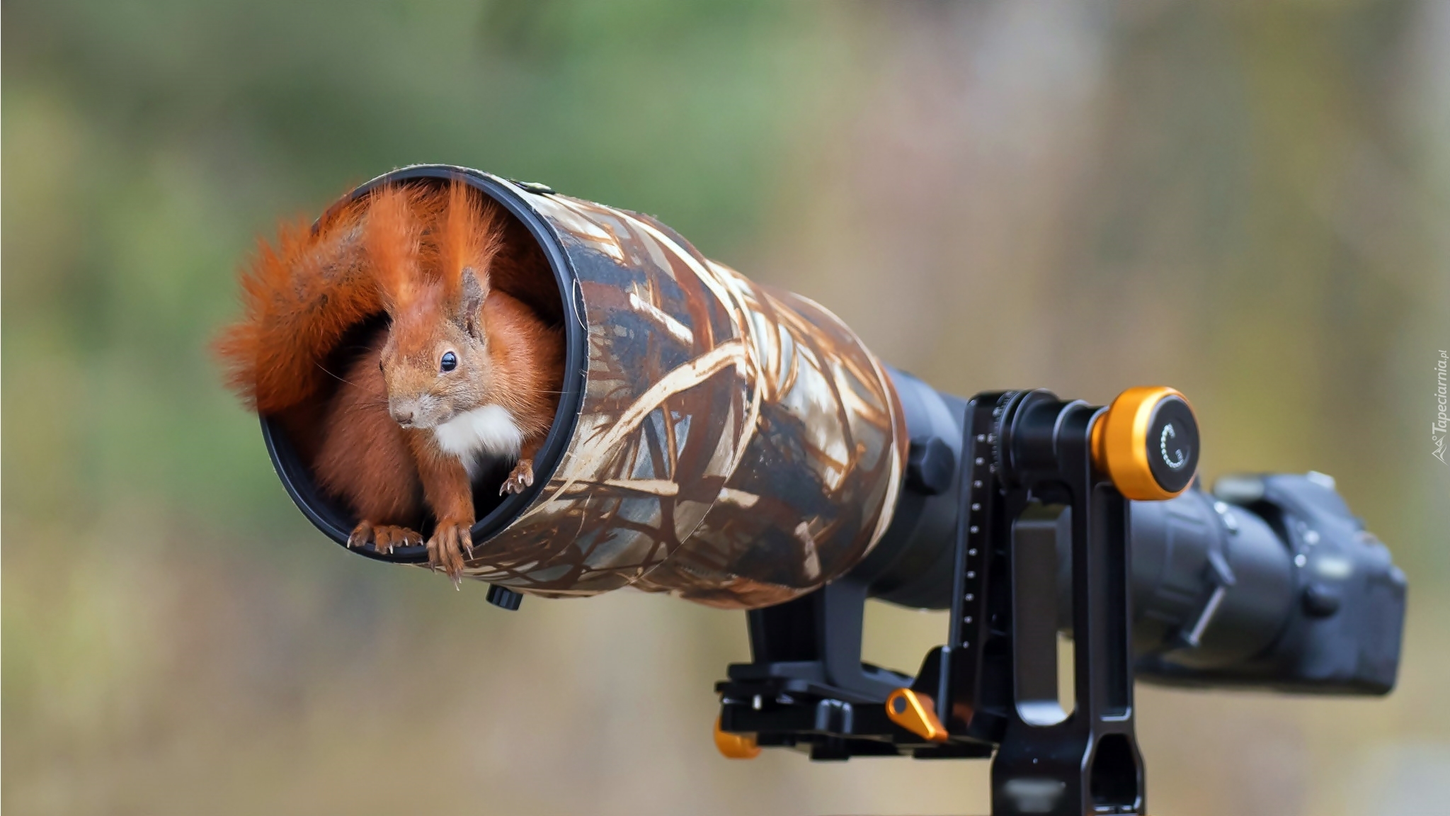 Edytor tapety: Wiewiórka schroniła się w obiektywie