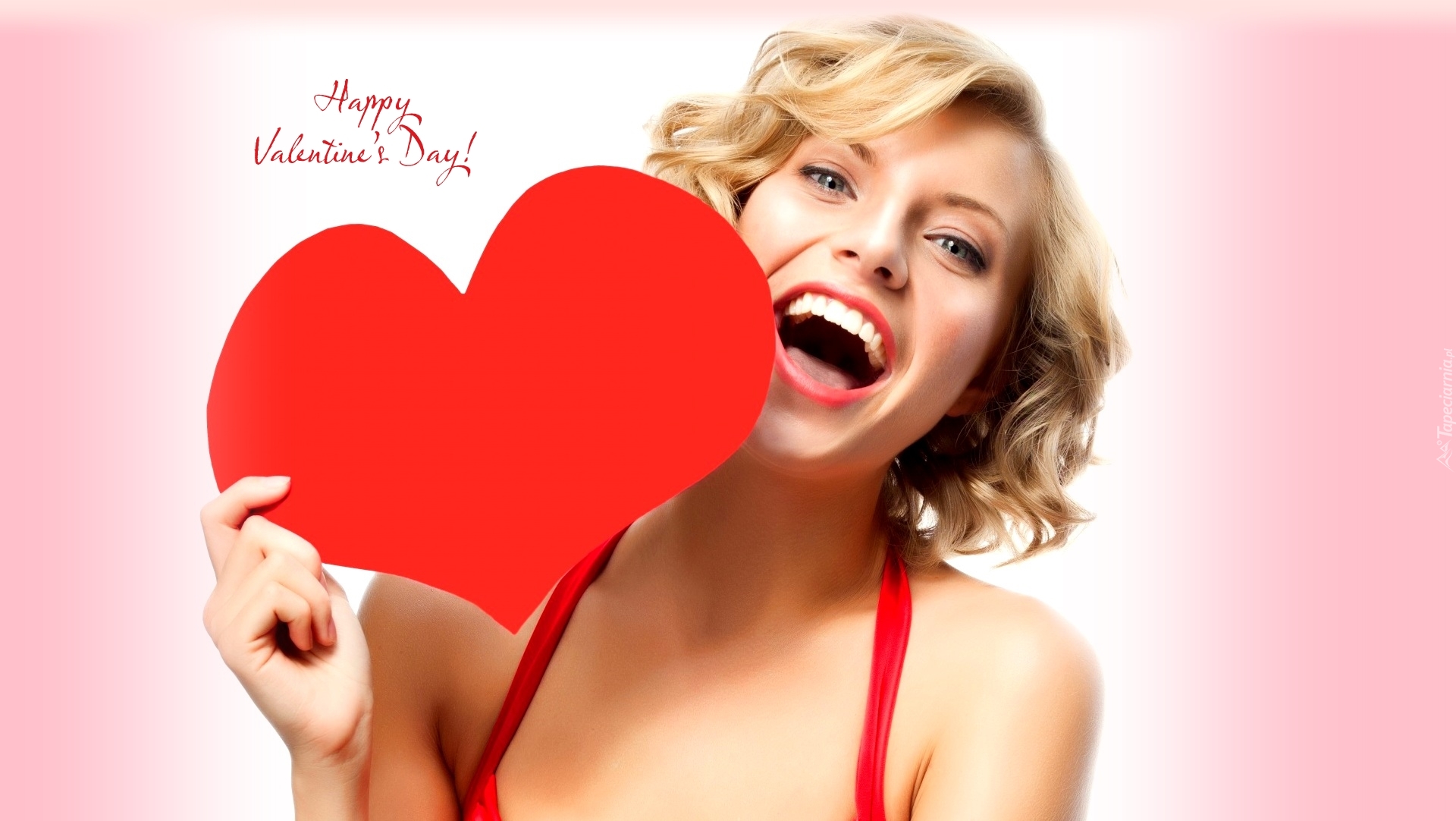 Edytor tapety: Uśmiechnięta blondynka z sercem i walentynkowymi życzeniami