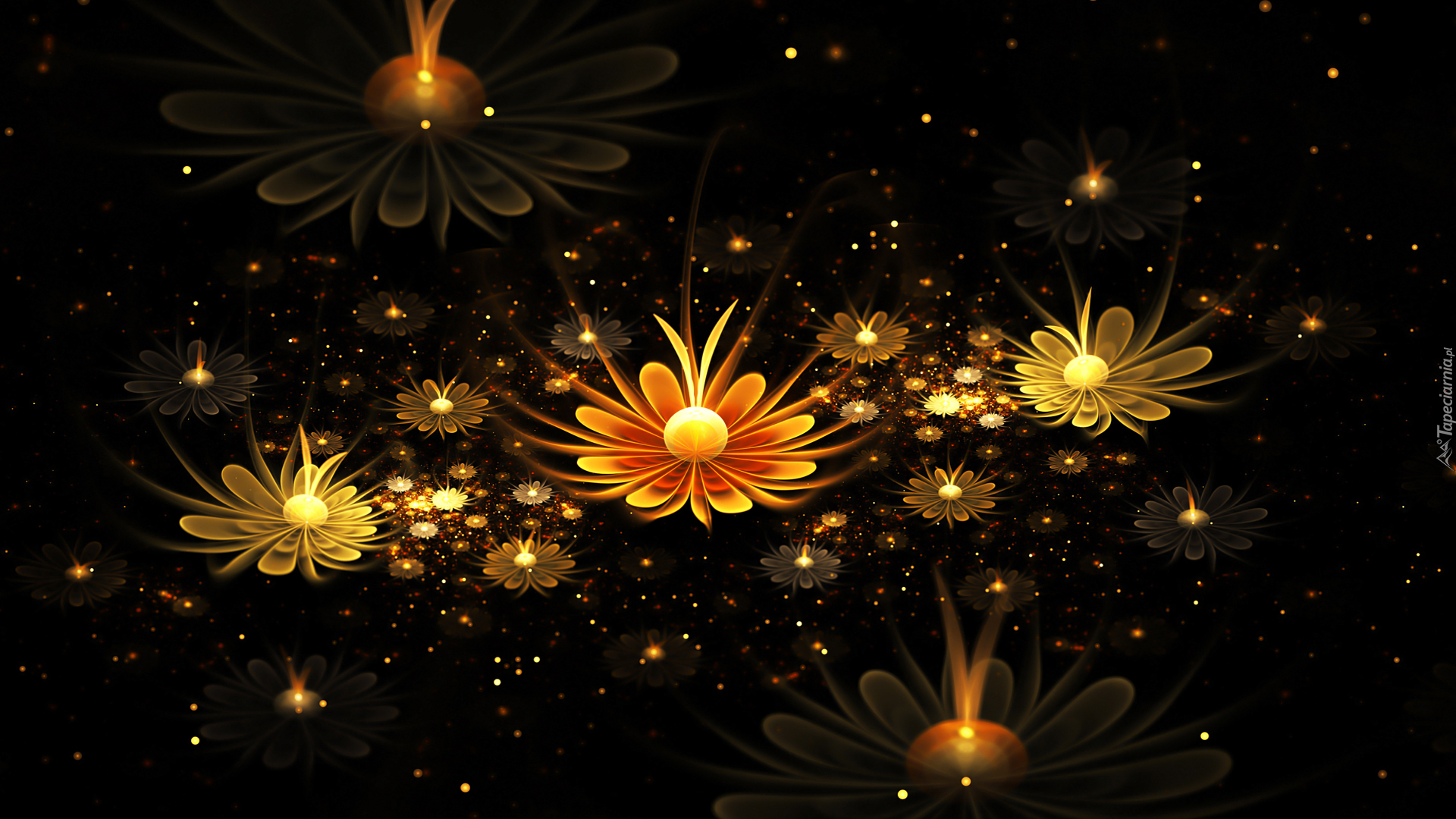 Edytor tapety: Świecące graficzne kwiaty w 3D