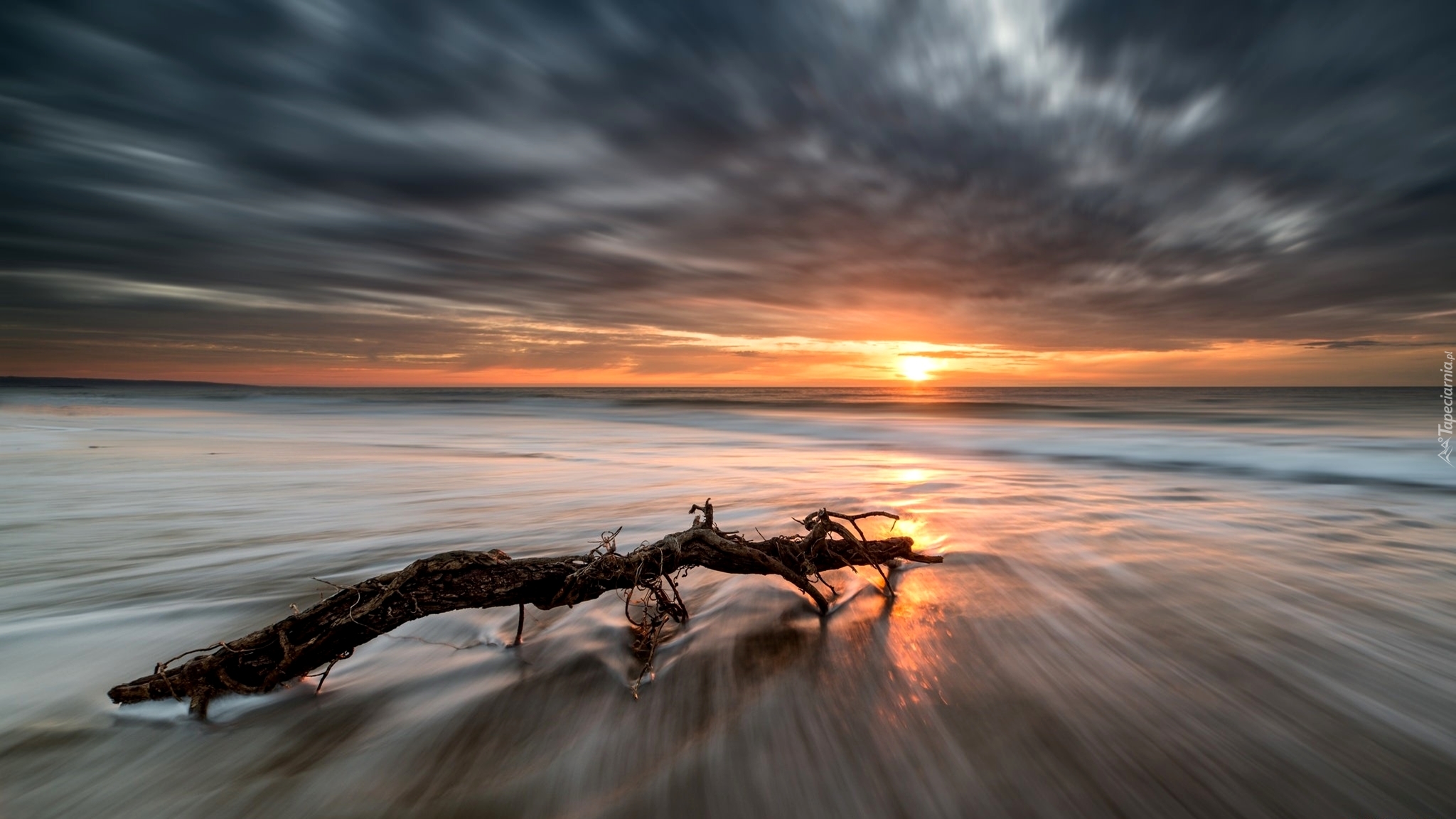 Edytor tapety: Konar drzewa obmywany przez morskie fale