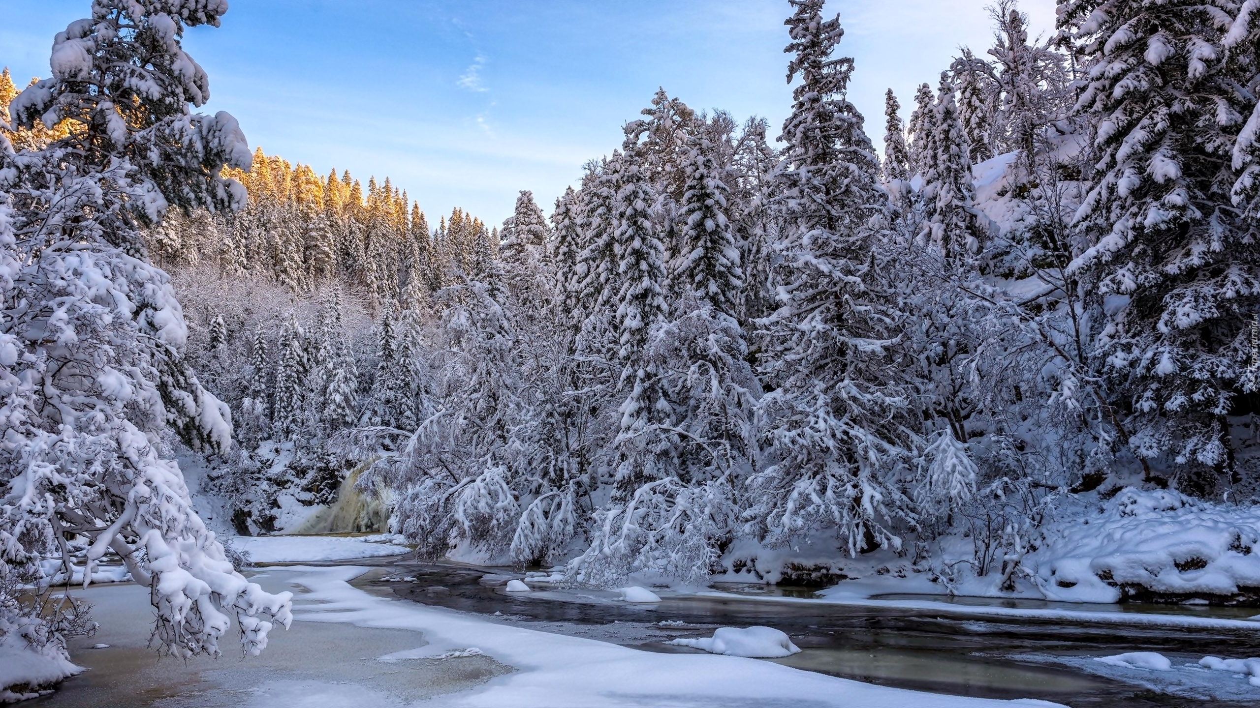 Edytor tapety: Rzeka płynąca przez zaśnieżony las