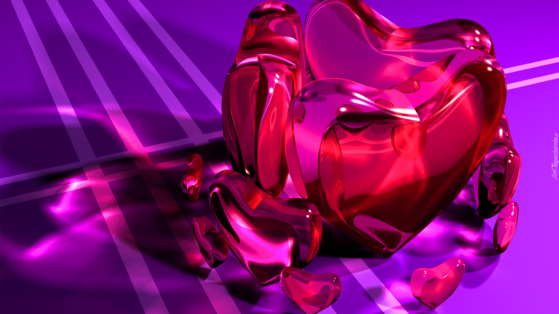 Edytor tapety: Walentynkowe szklane serca w grafice 3D