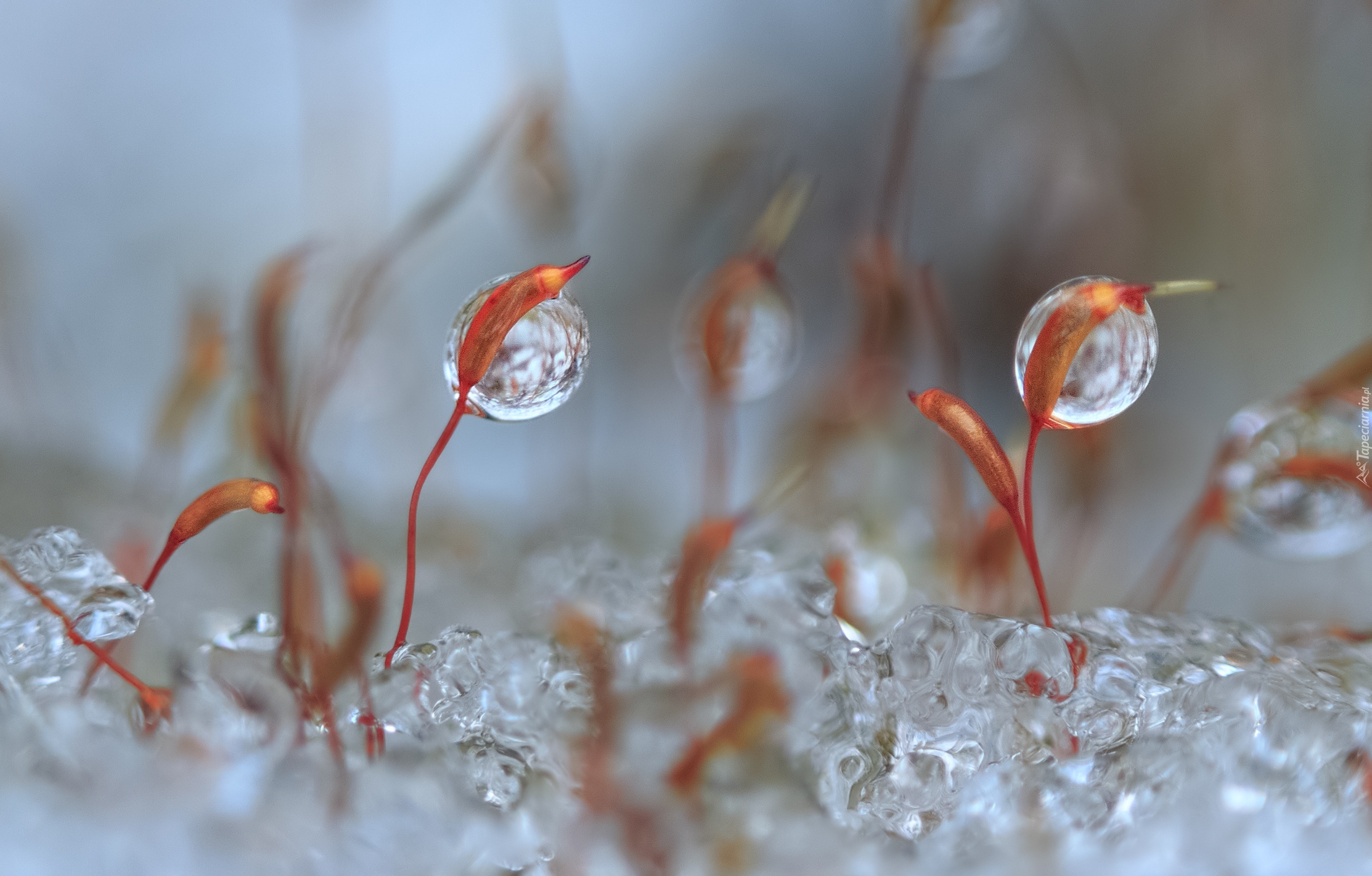 Edytor tapety: Krople wody na małych roślinkach