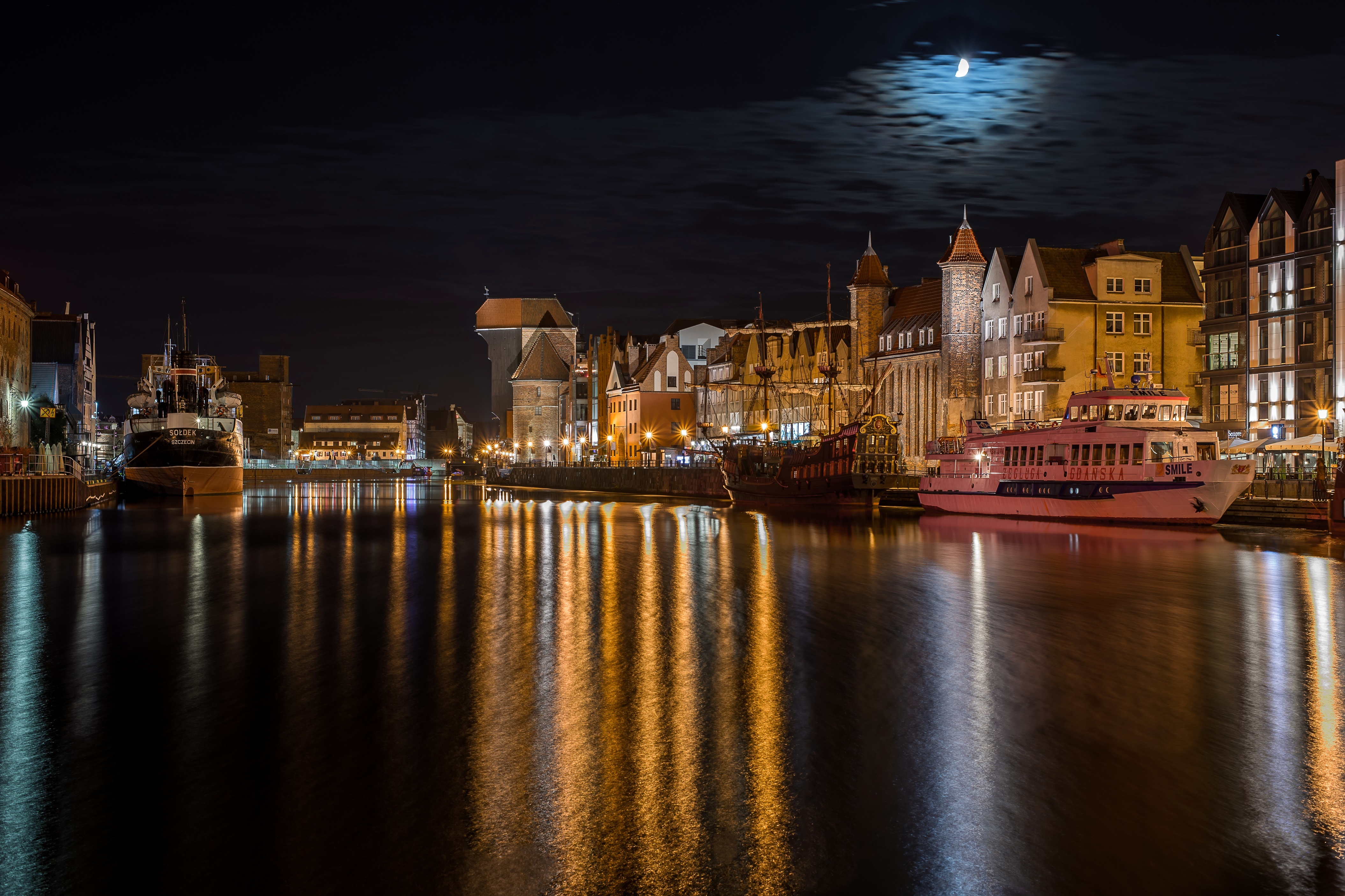 Edytor tapety: Rozświetlony nocny Gdańsk