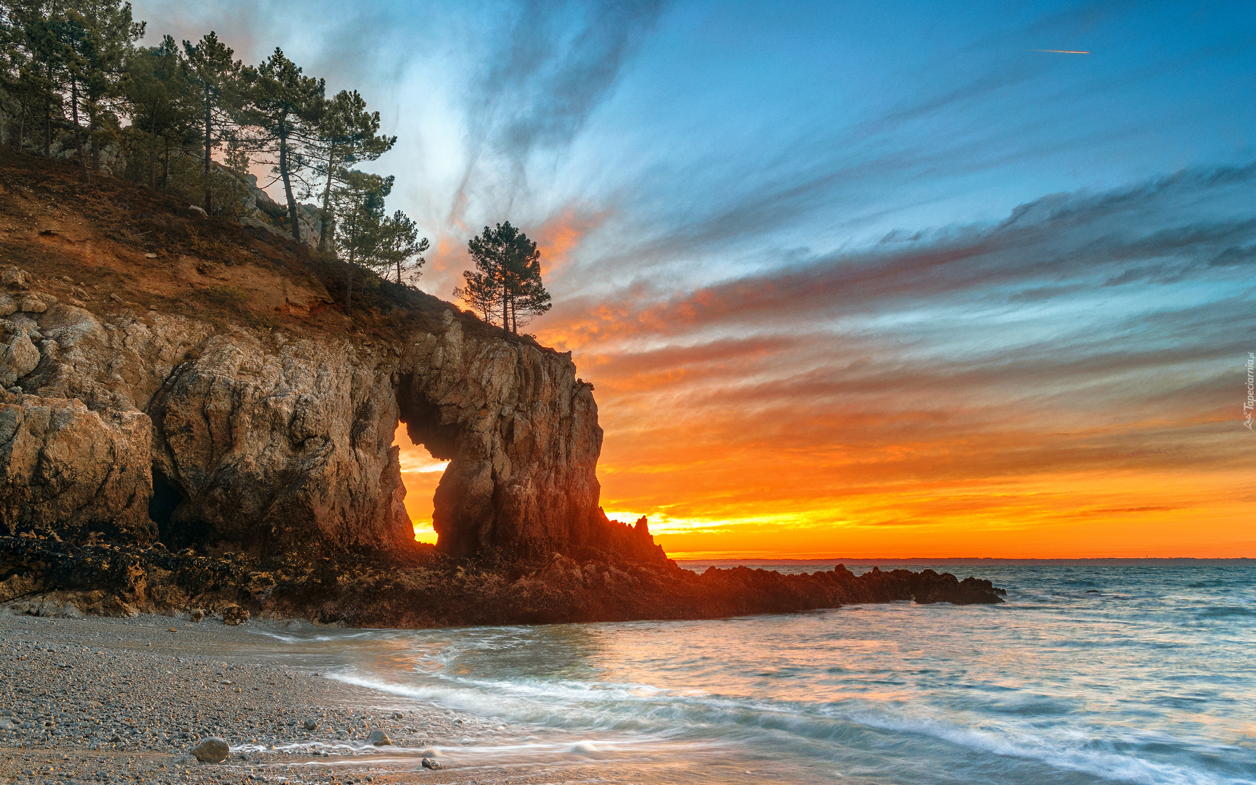 Edytor tapety: Skała nad morzem porośnięta drzewami