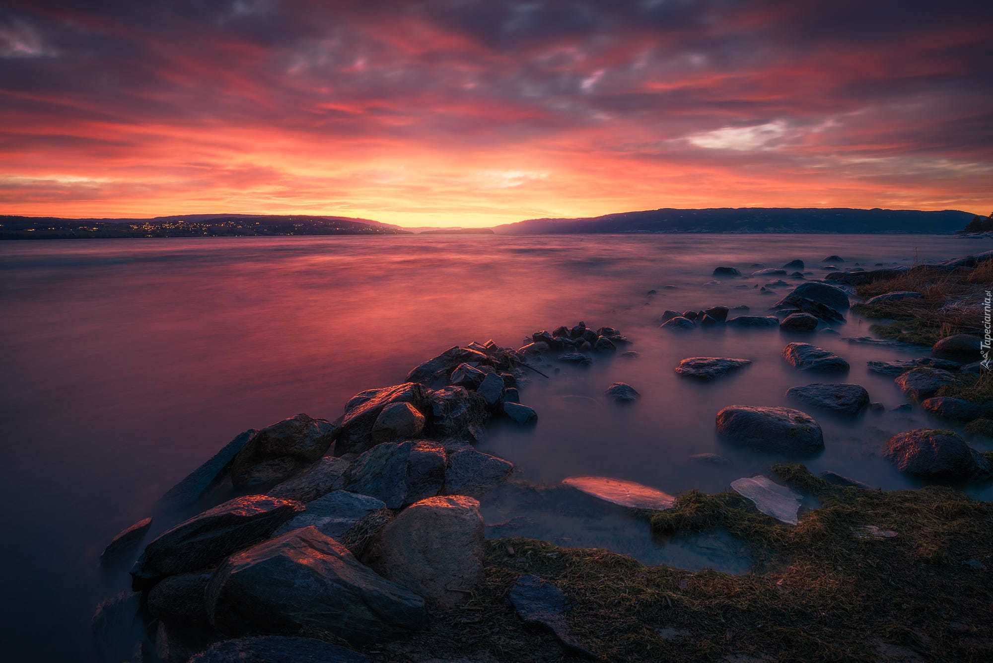 Edytor tapety: Wschód słońca nad jeziorem Tyrifjorden w Norwegii