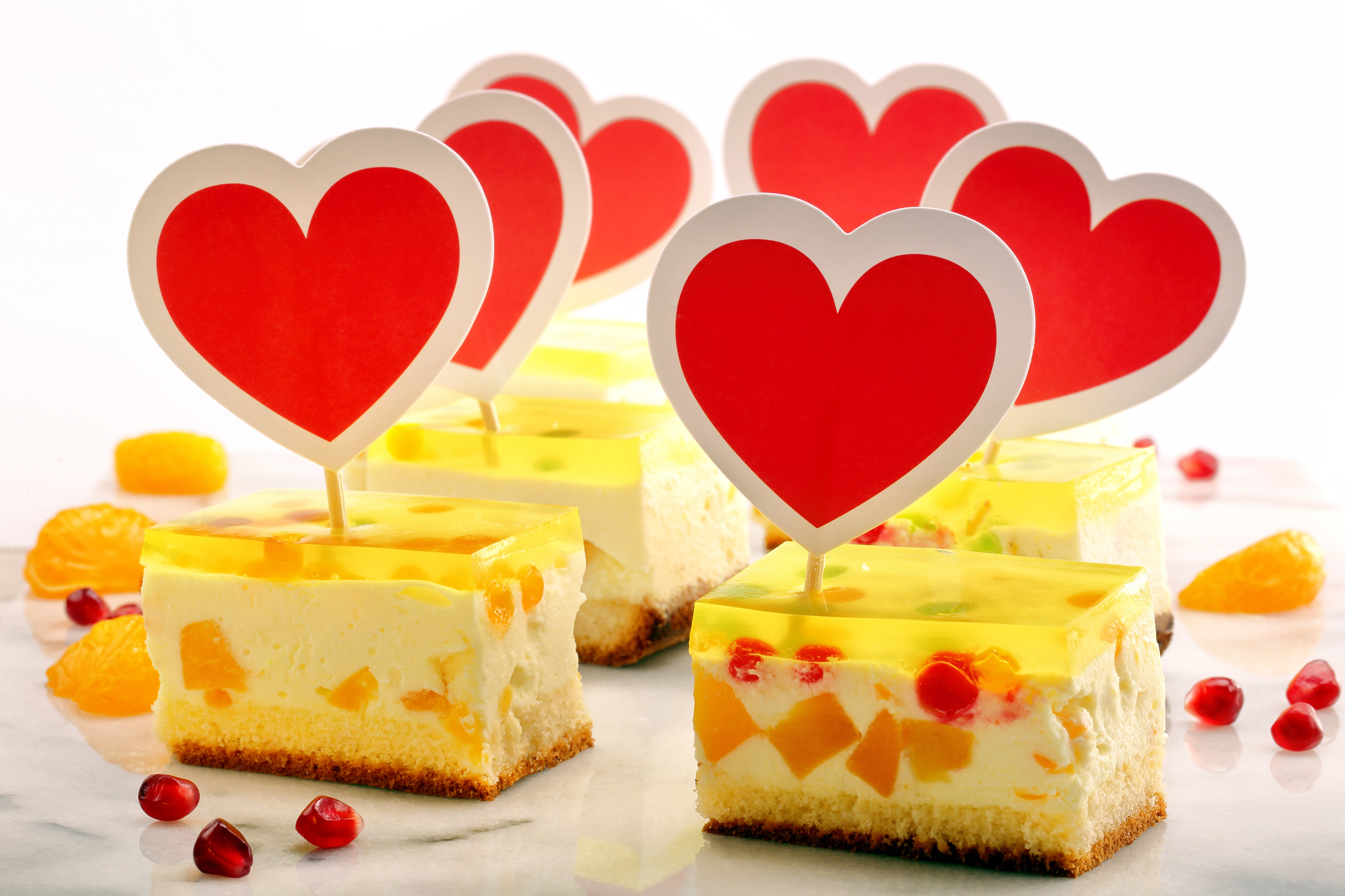 Edytor tapety: Sernik z galaretką udekorowany lizakami w kształcie serca