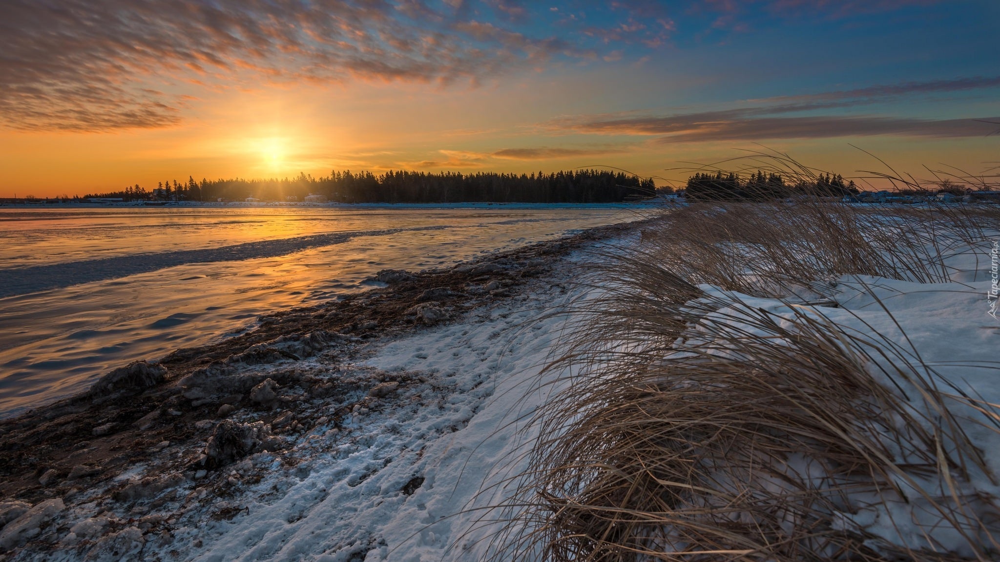 Edytor tapety: Ośnieżone pola i suche trawy