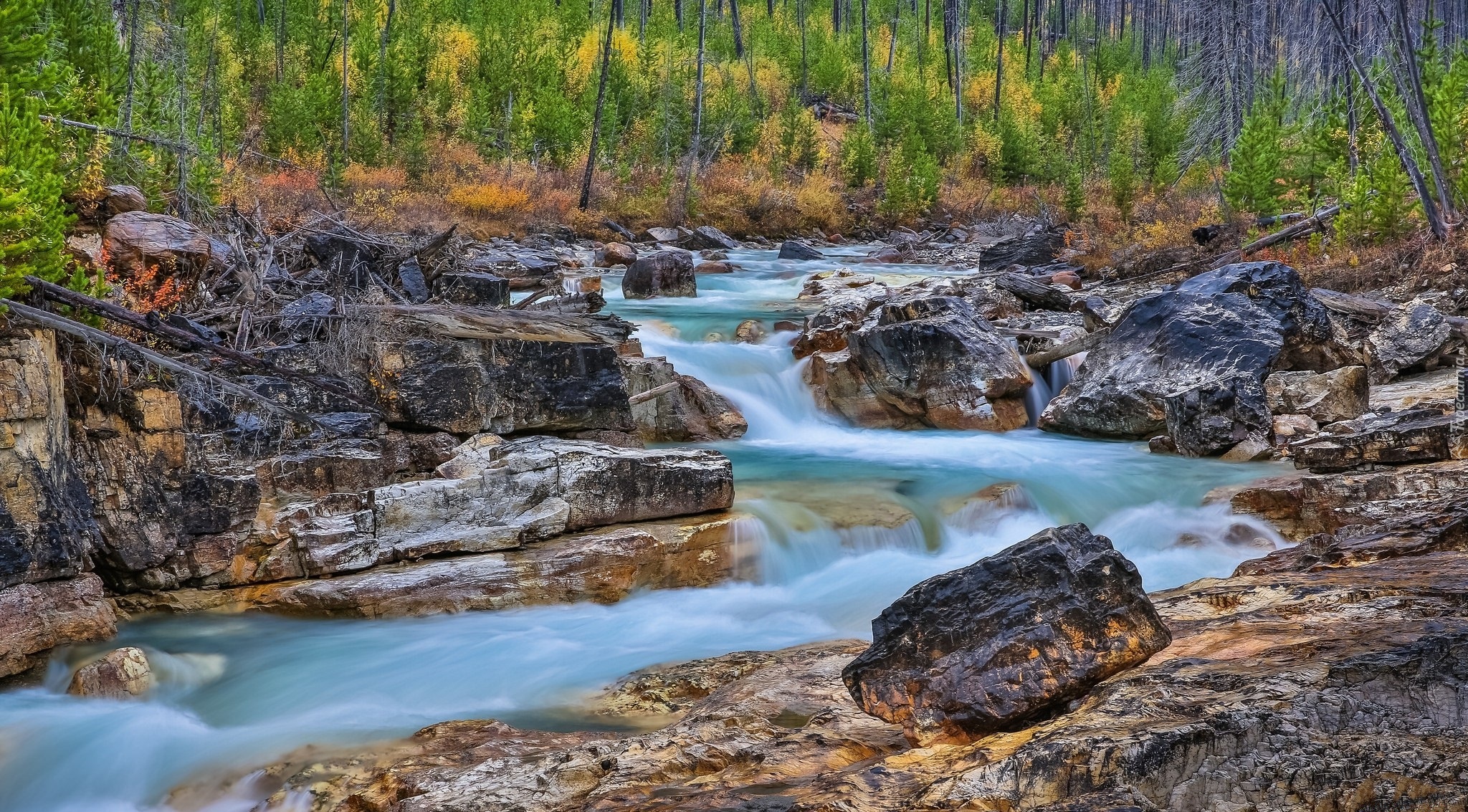 Edytor tapety: Leśna rwąca rzeczka płynie wśród kamieni