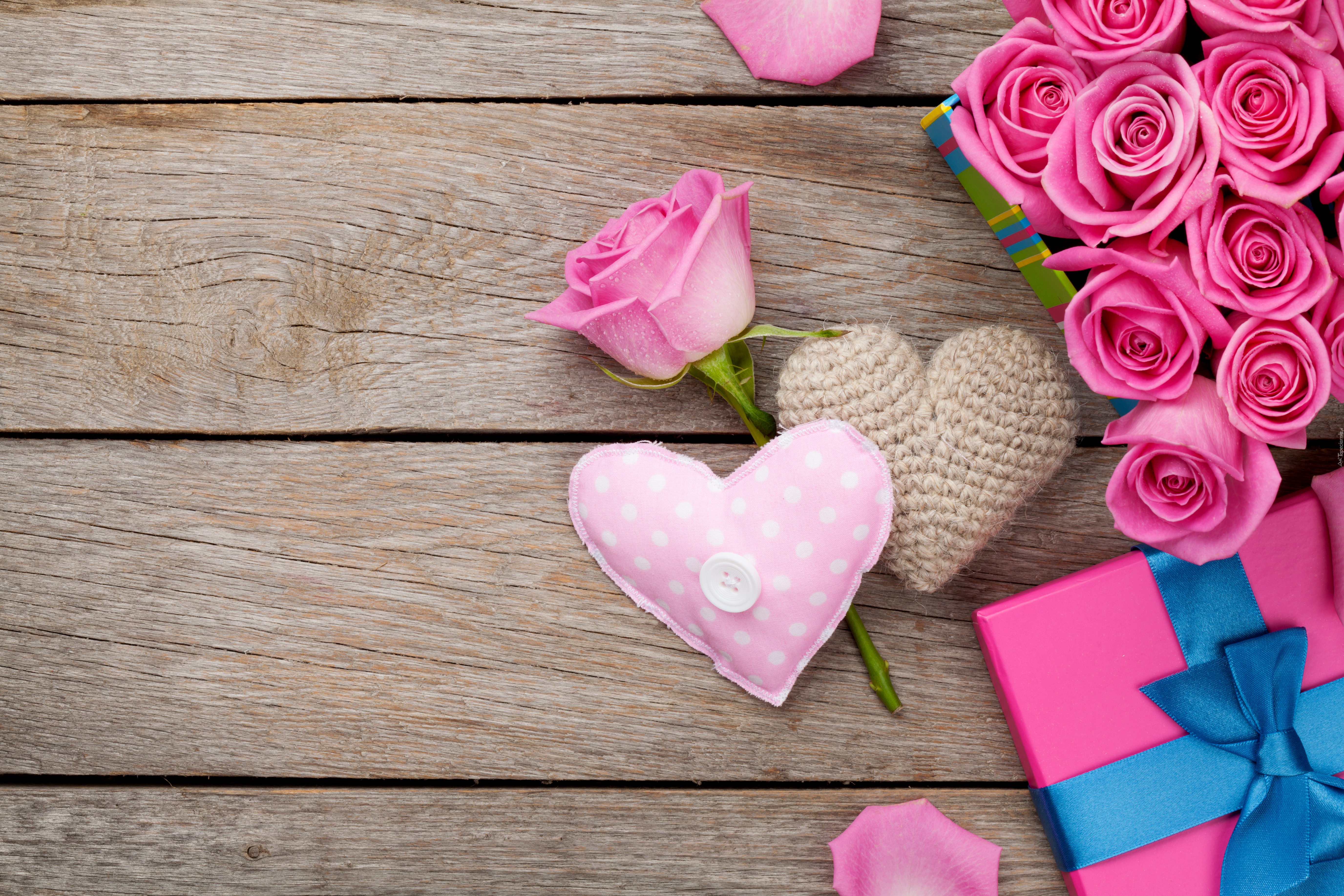 Edytor tapety: Walentynkowa kompozycja z róż i serc