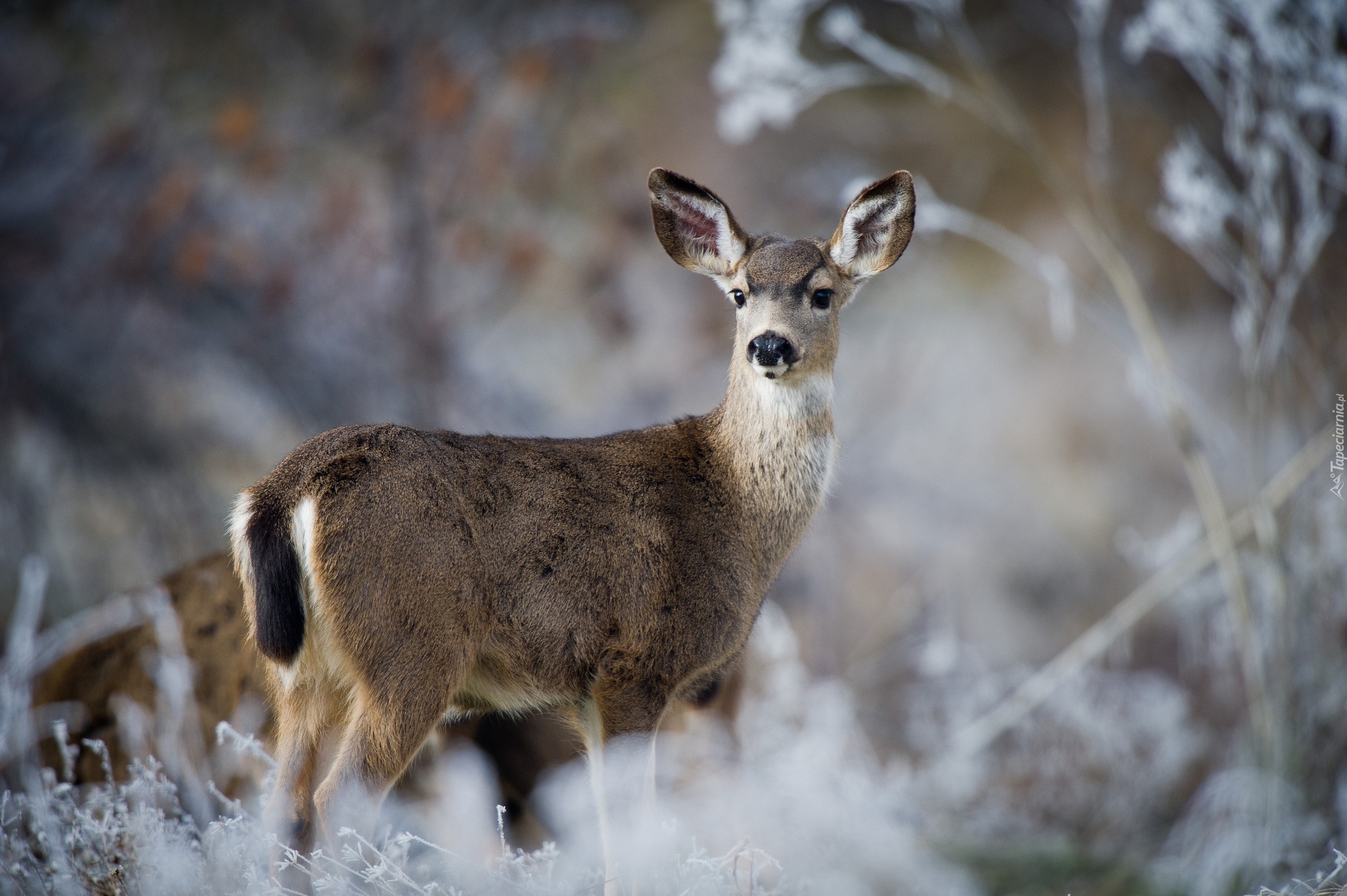 Edytor tapety: Jelonek w oszronionych zaroślach