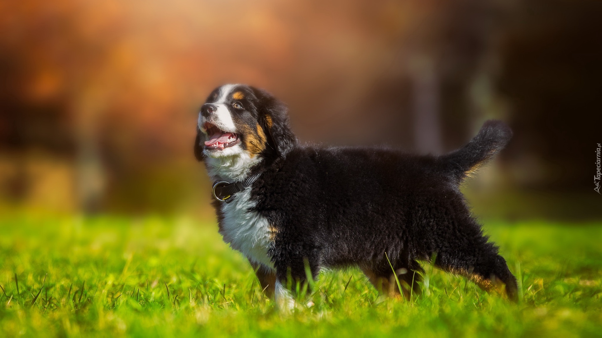 Edytor tapety: Radosny szczeniak berneńskiego psa pasterskiego na łące