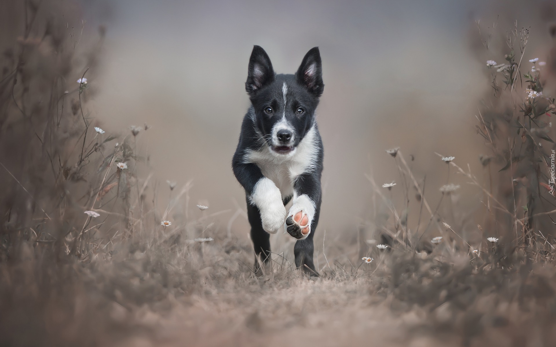 Edytor tapety: Szczeniak border collie biegnący po trawie