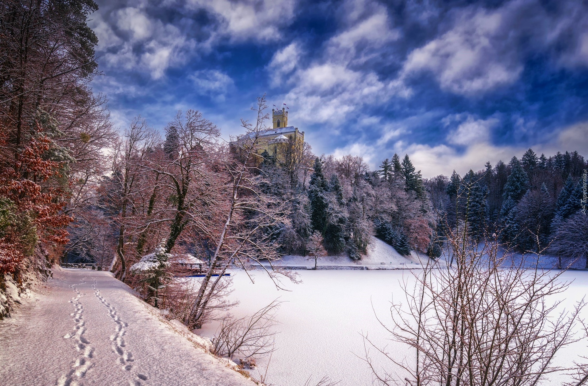 Edytor tapety: Zamek Trakoscan nad jeziorem w Chorwacji