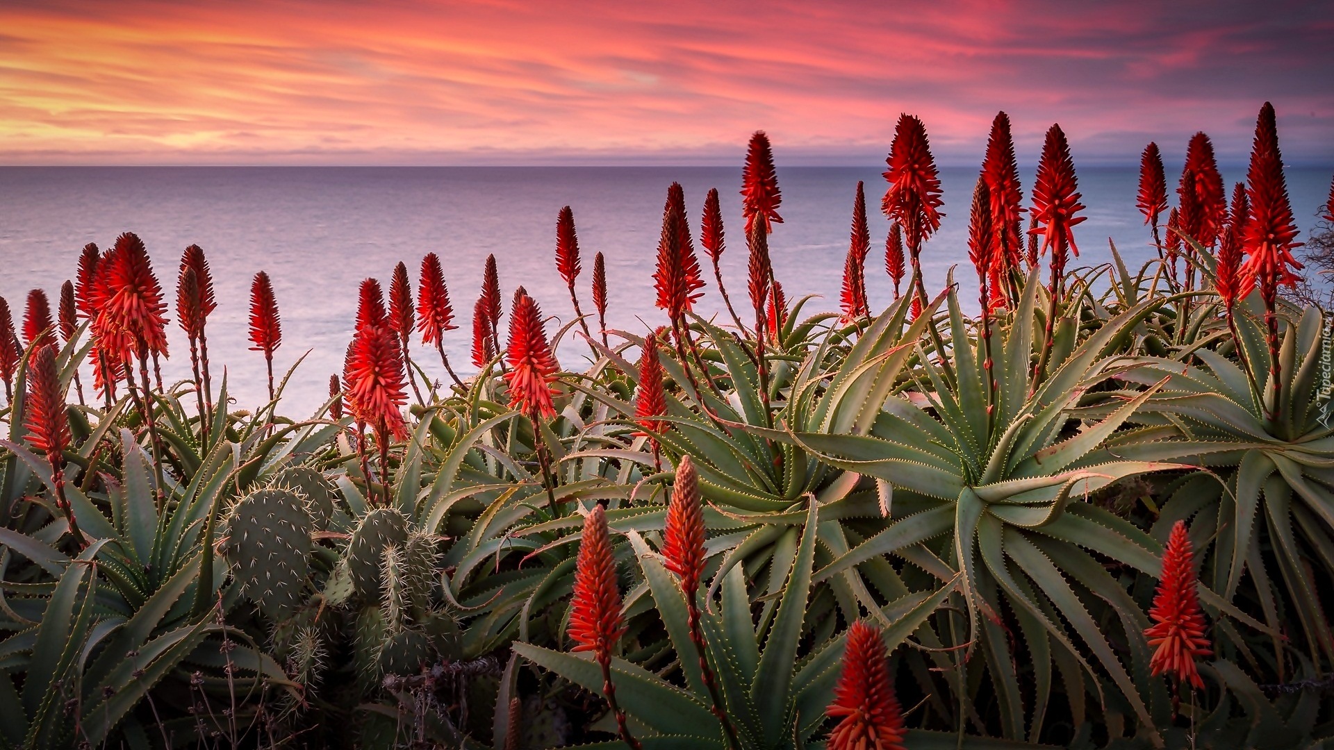 Edytor tapety: Kwitnący aloes z zachodem słońca w tle