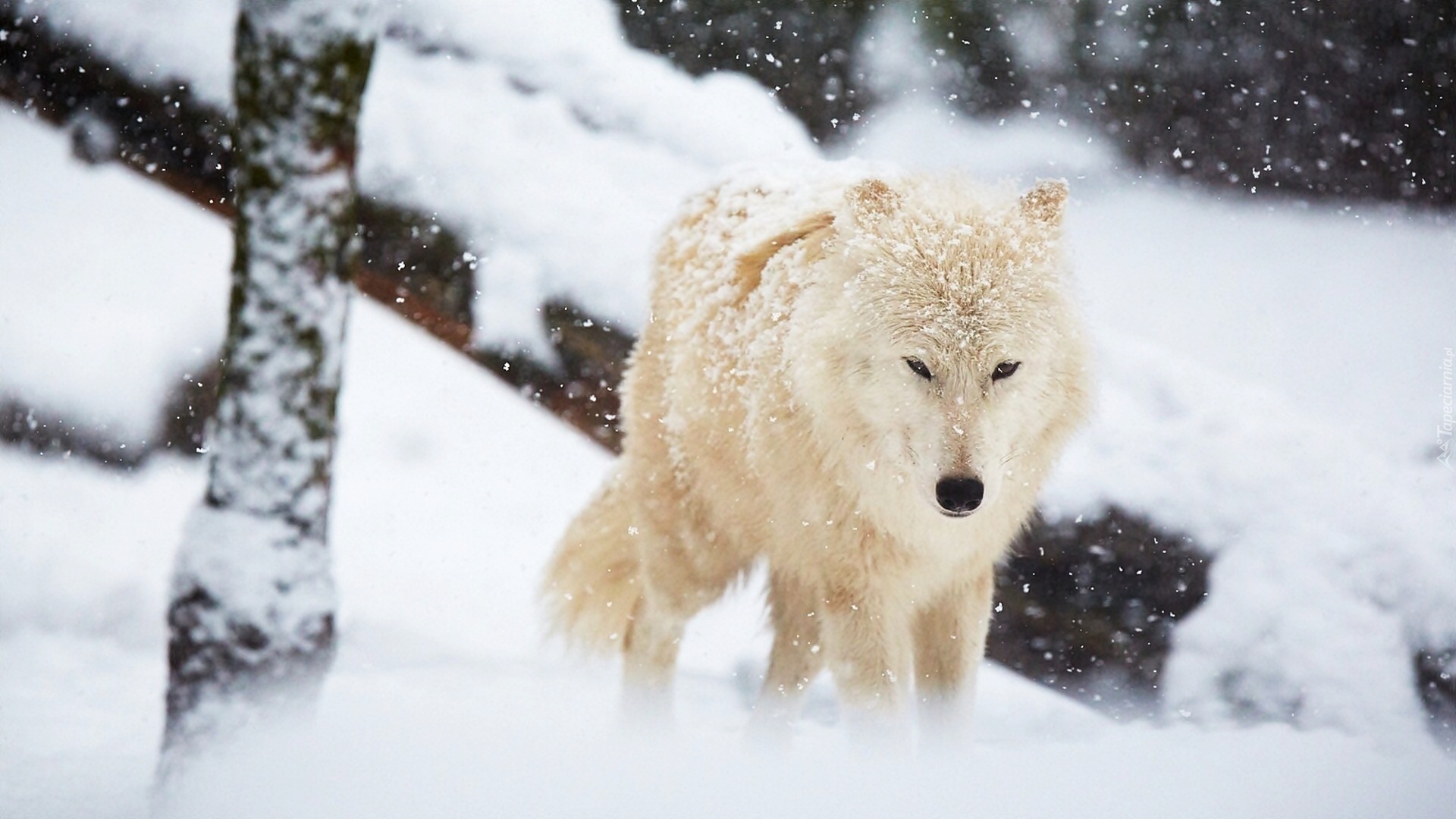 Edytor tapety: Biały wilk polarny na śniegu