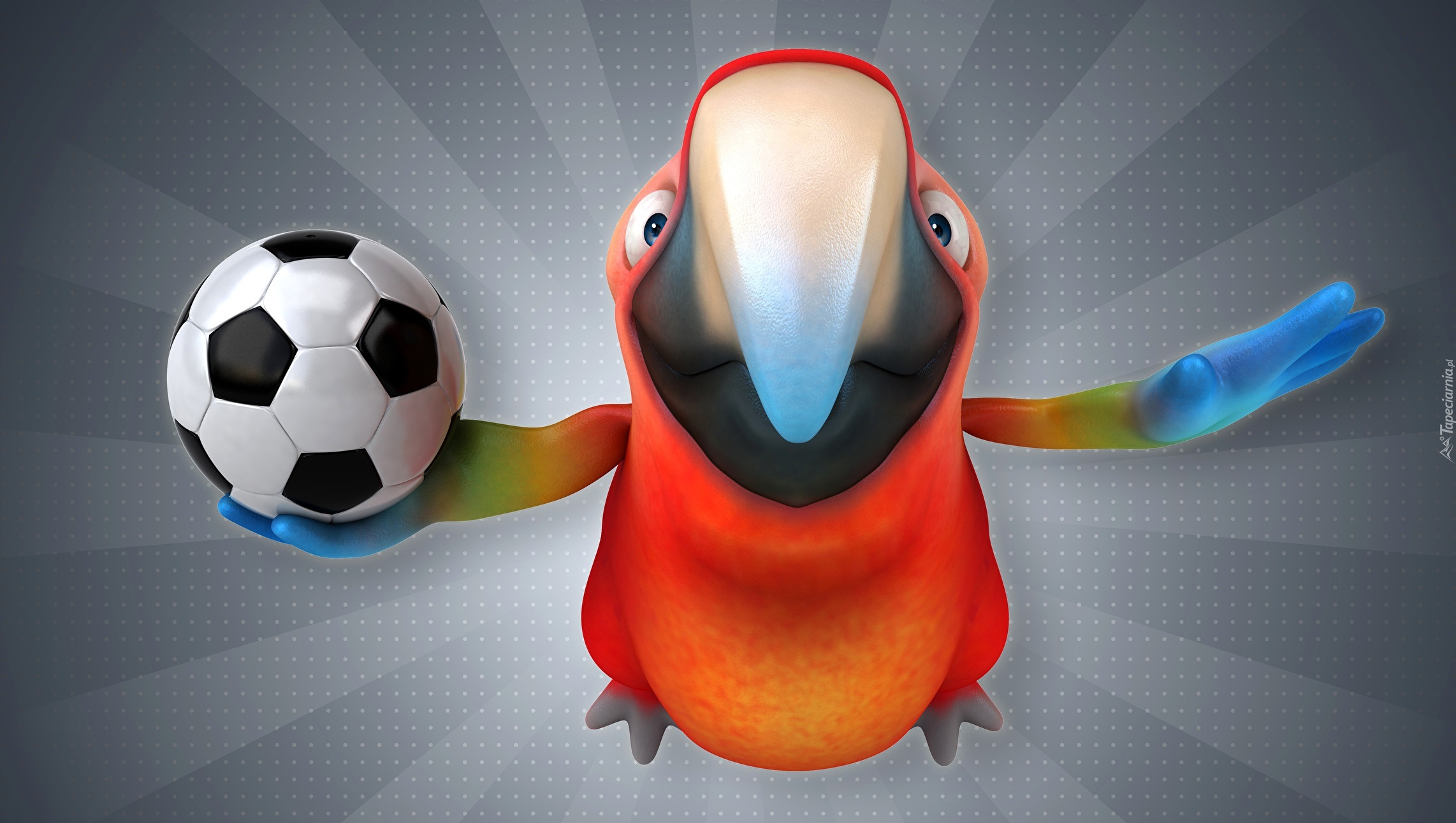Edytor tapety: Papuga z piłką nożną w grafice 3D