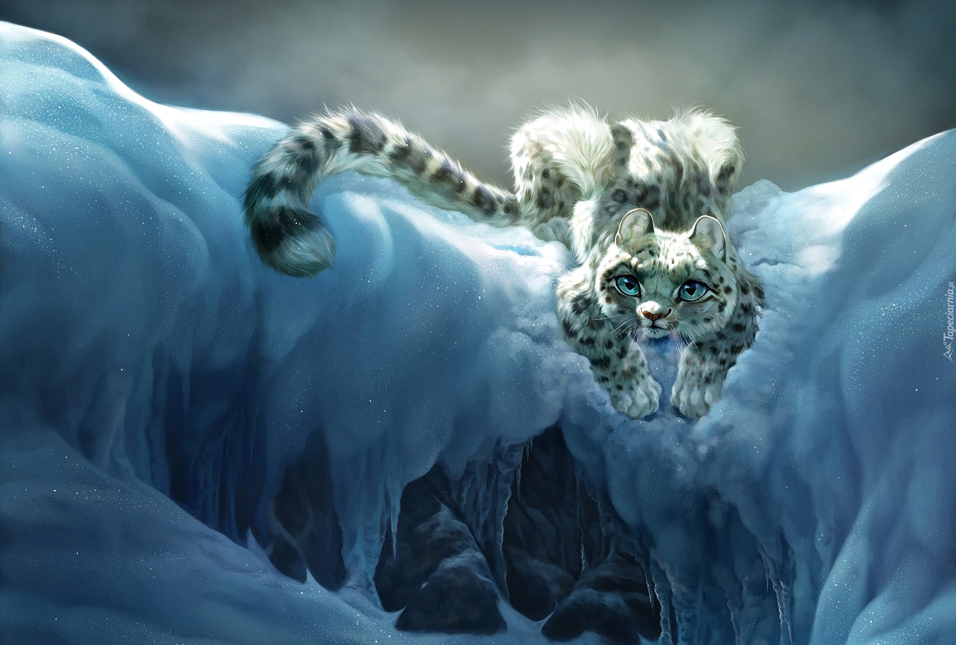 Edytor tapety: Grafika z irbisem na śniegu w 3D