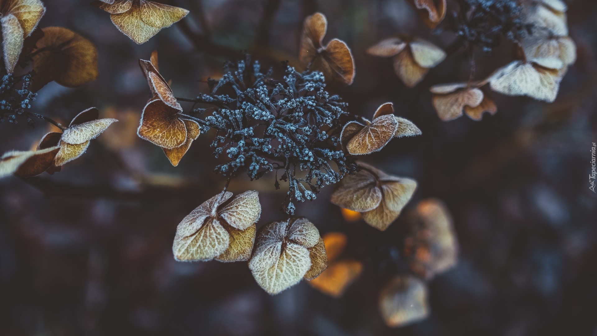 Edytor tapety: Uschnięta oszroniona hortensja