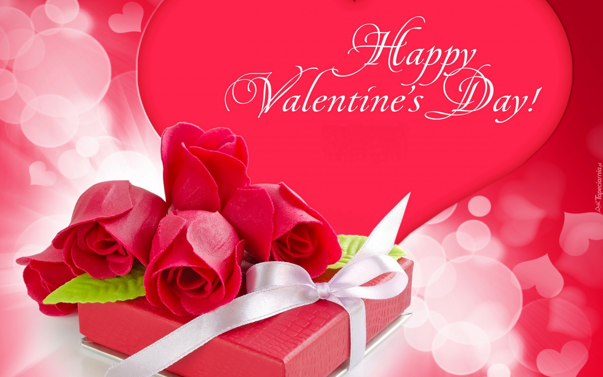 Edytor tapety: Życzenia walentynkowe z prezentem i różami