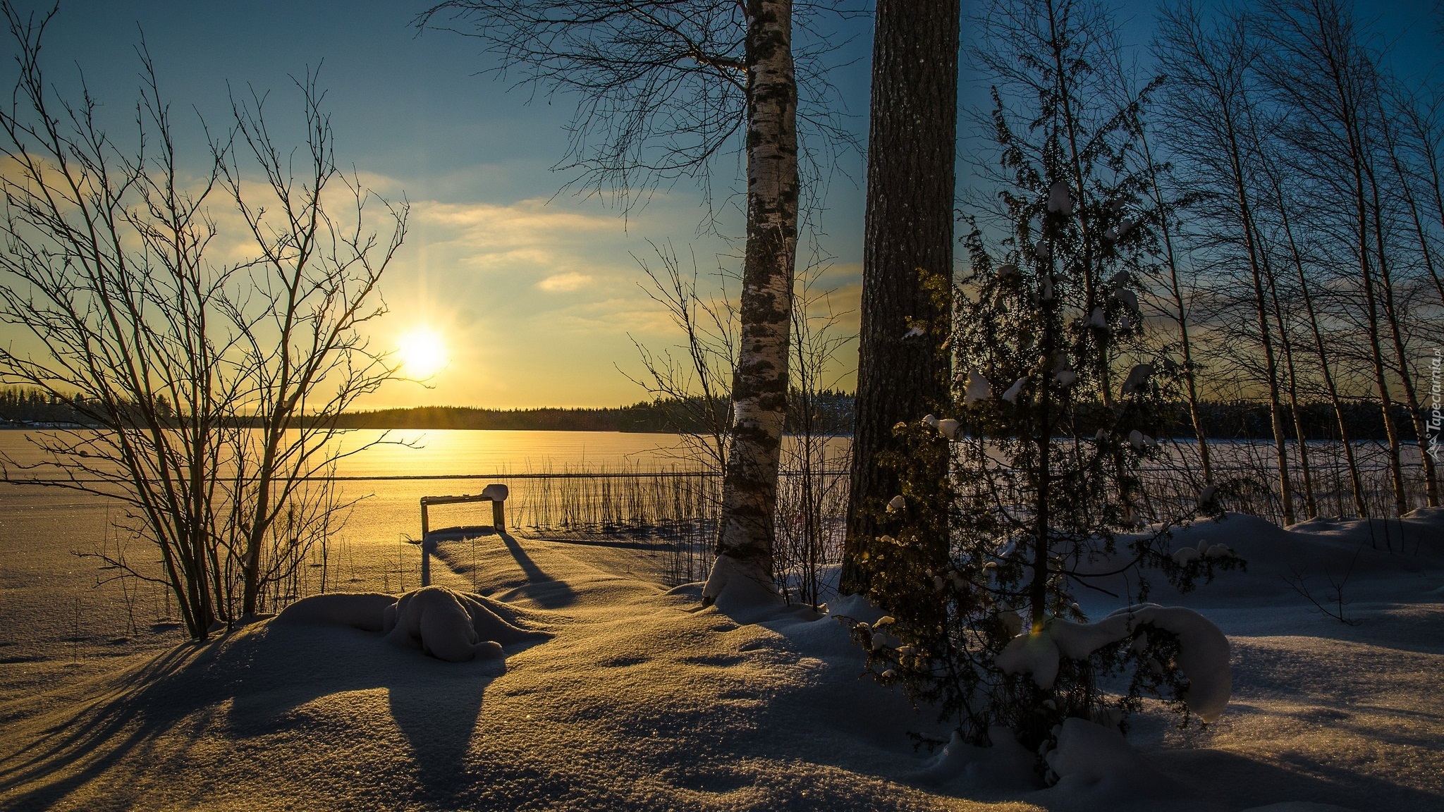 Edytor tapety: Widok na jezioro przysypane śniegiem