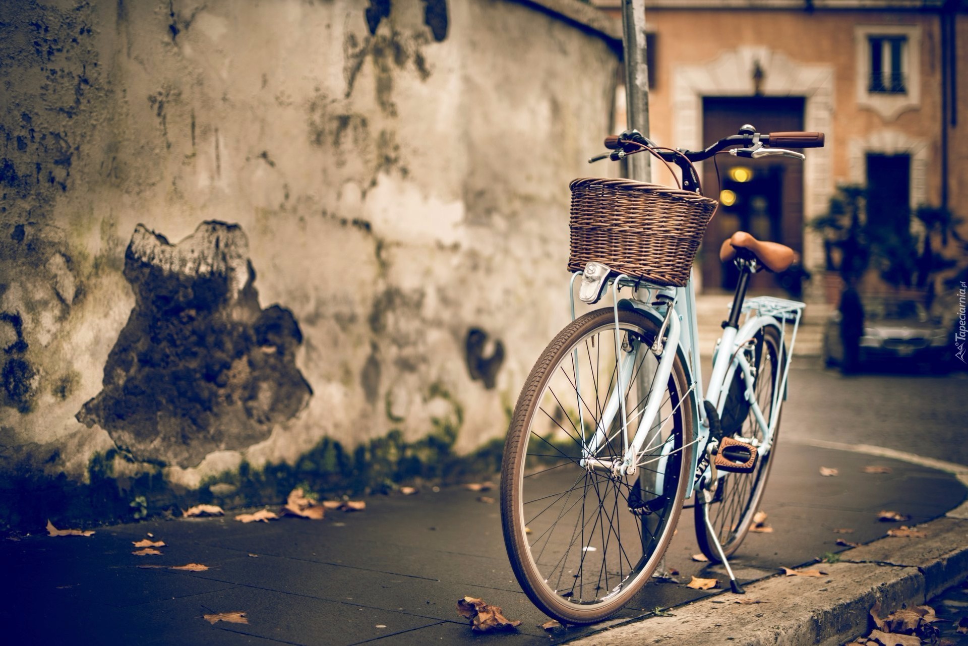 Edytor tapety: Rower przypięty do słupka na chodniku
