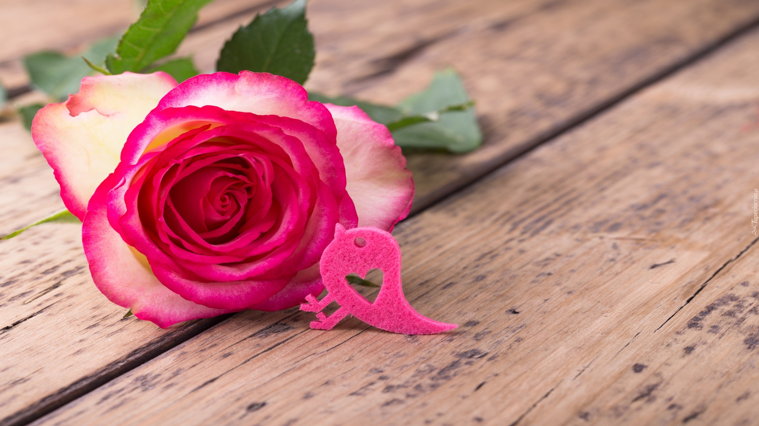 Edytor tapety: Walentynkowa róża i ptaszek z serduszkiem