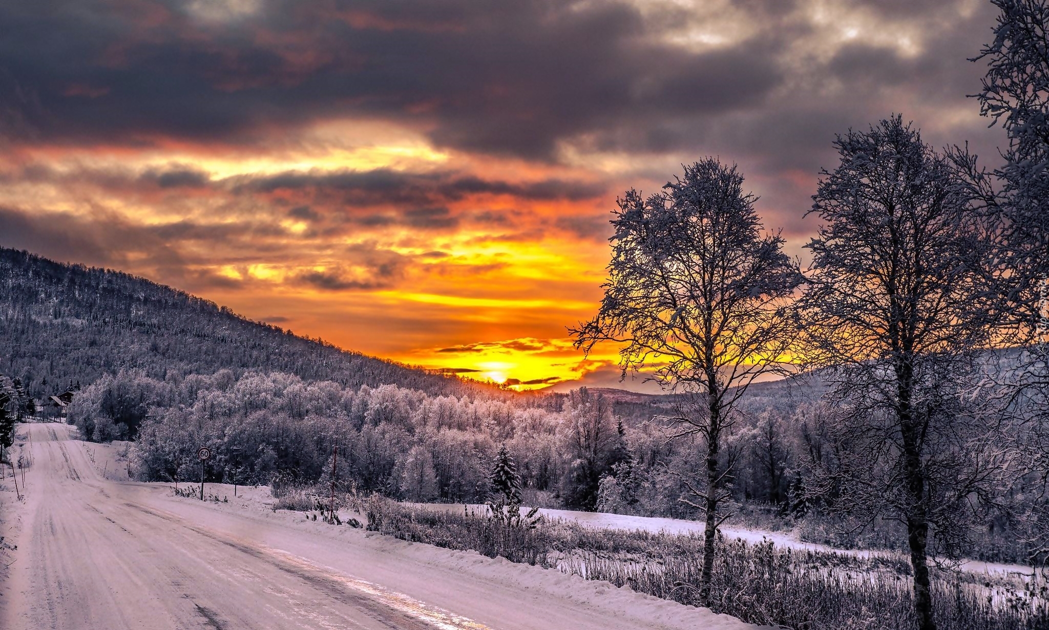 Edytor tapety: Zimowy wschód słońca na norweskiej wyspie Senja