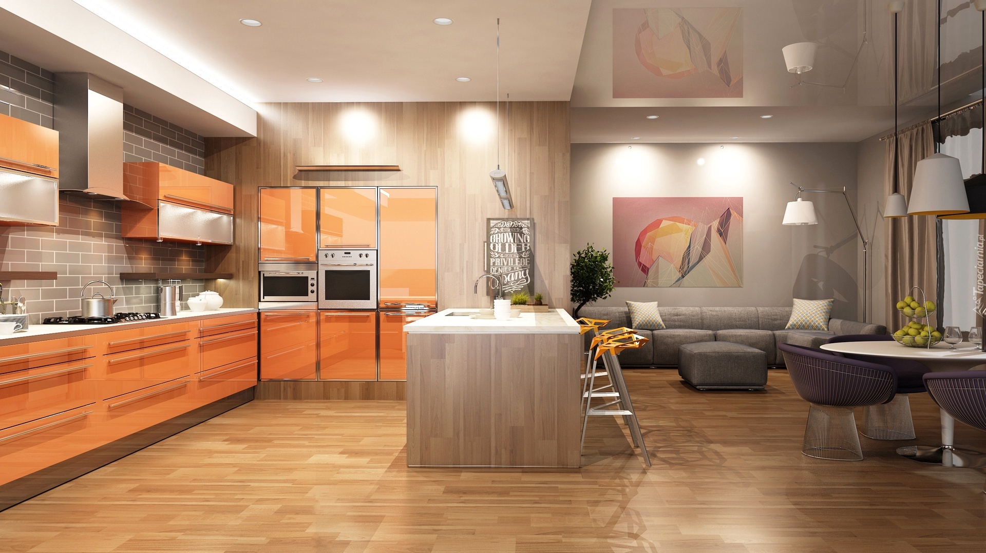 Edytor tapety: Wnętrze kuchni połączone z salonem
