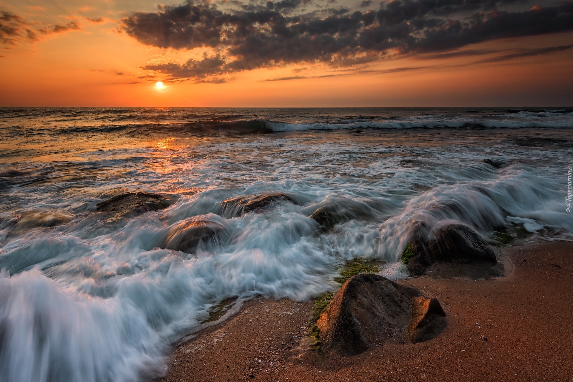 Edytor tapety: Wzburzone morze o zachodzie słońca