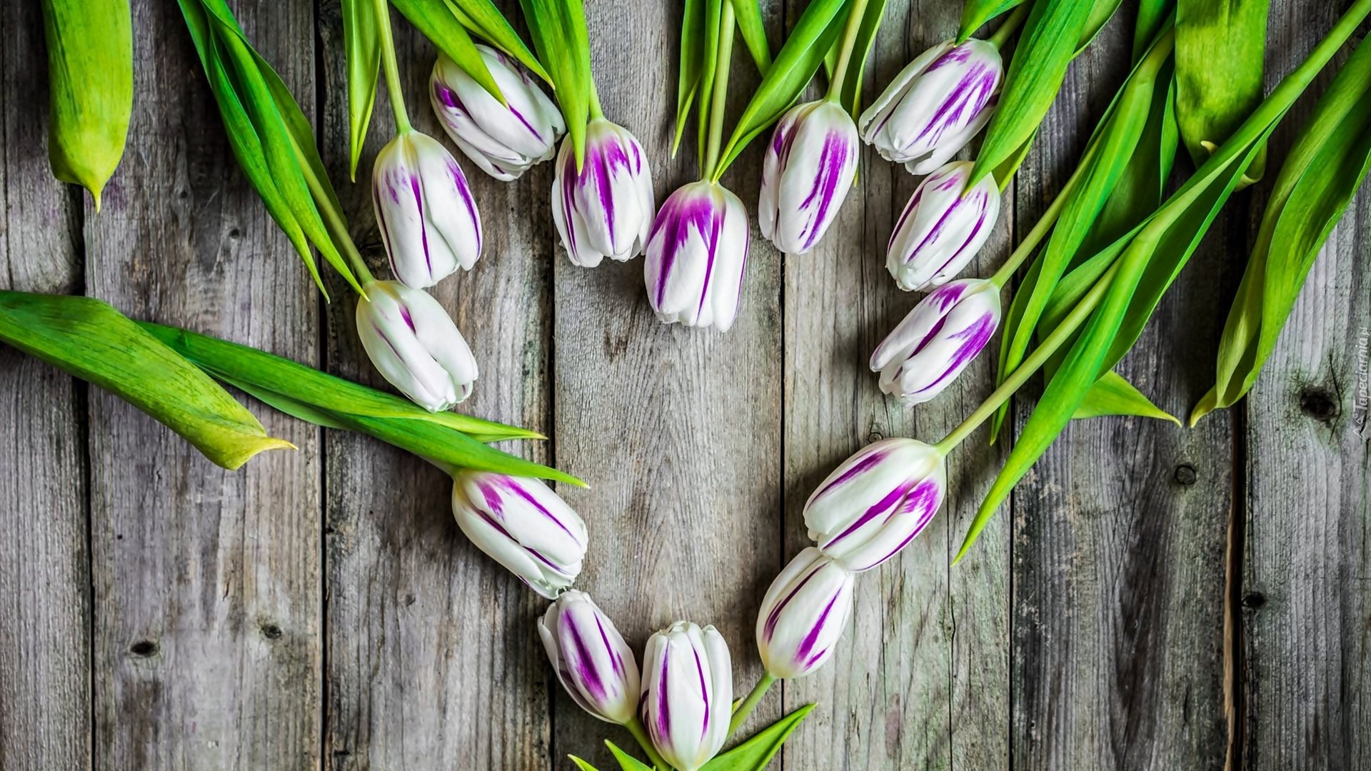 Edytor tapety: Serce ułożone z tulipanów