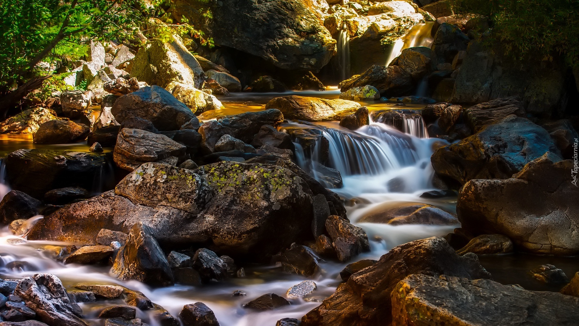 Edytor tapety: Wodospad na skale spływający do kamienistej rzeki