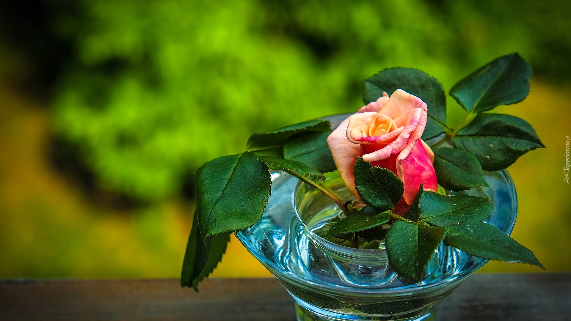 Edytor tapety: Róża z liśćmi w wazoniku