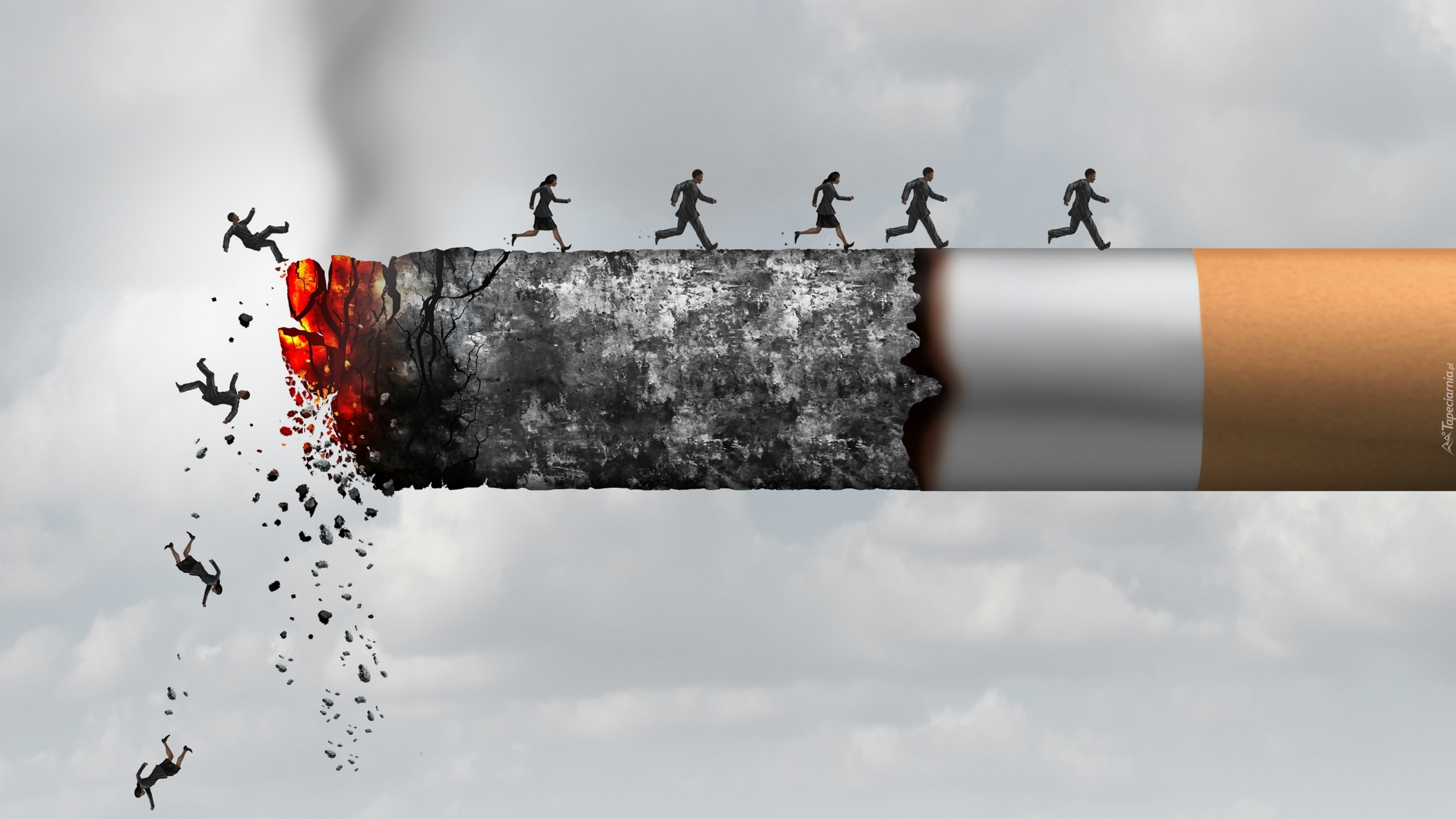 Edytor tapety: Ludzie uciekający z palącego się papierosa