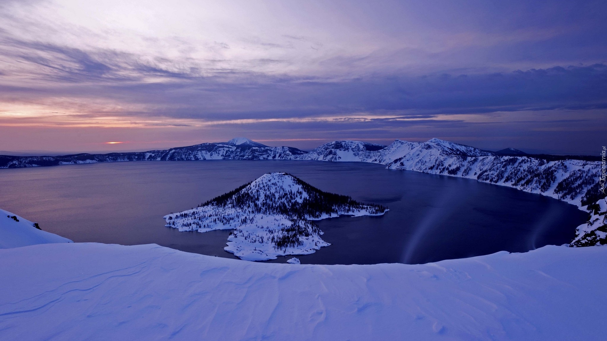 Edytor tapety: Jezioro Kraterowe w Oregonie zimą