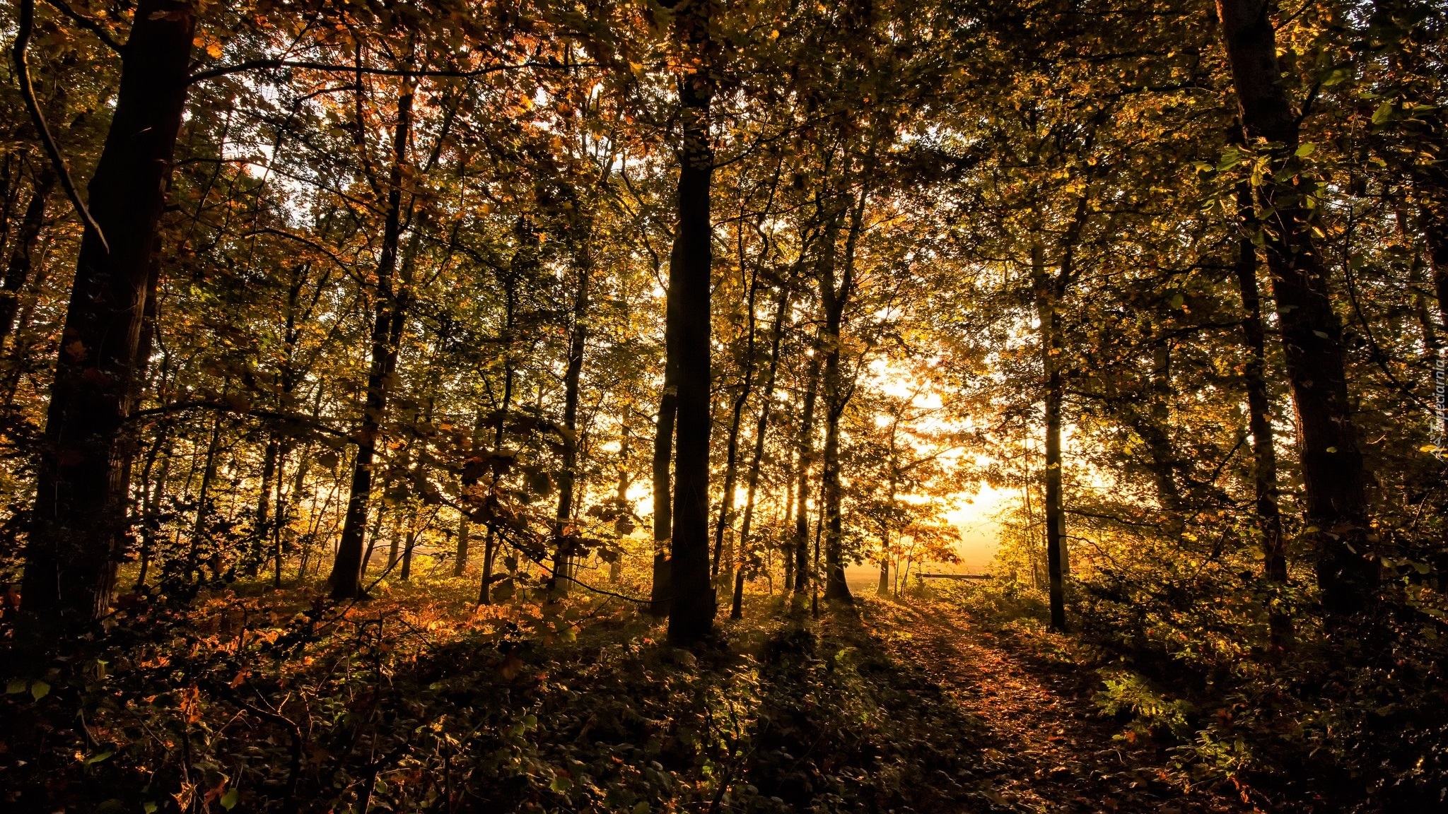 Edytor tapety: Jesień w lesie w blasku słońca