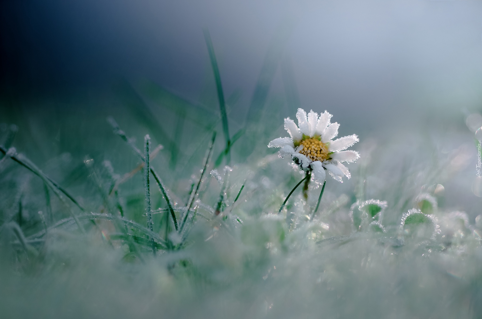 Edytor tapety: Oszroniona biała stokrotka