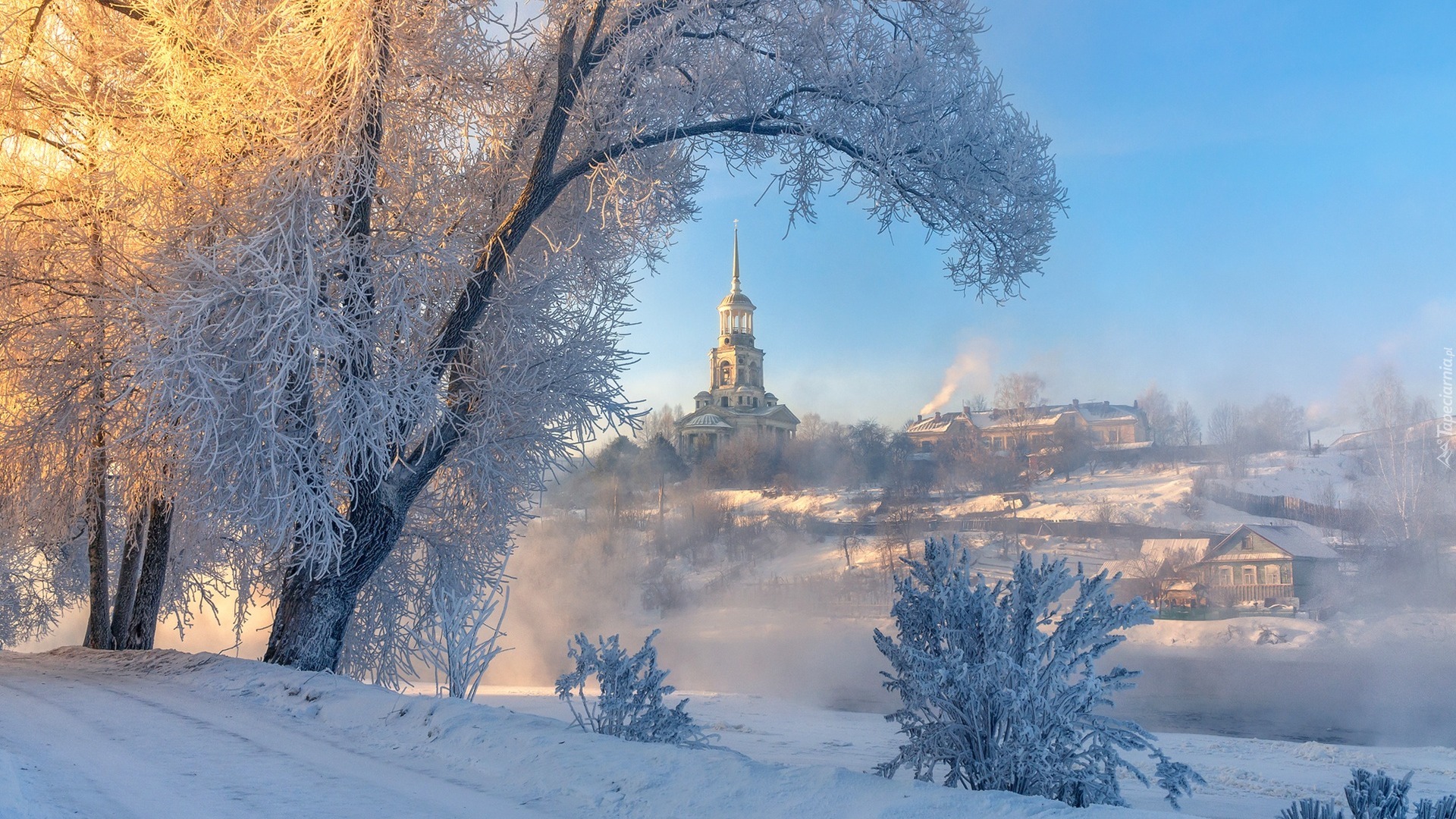 Edytor tapety: Widok na cerkiew w rosyjskim mieście Torżok zimą