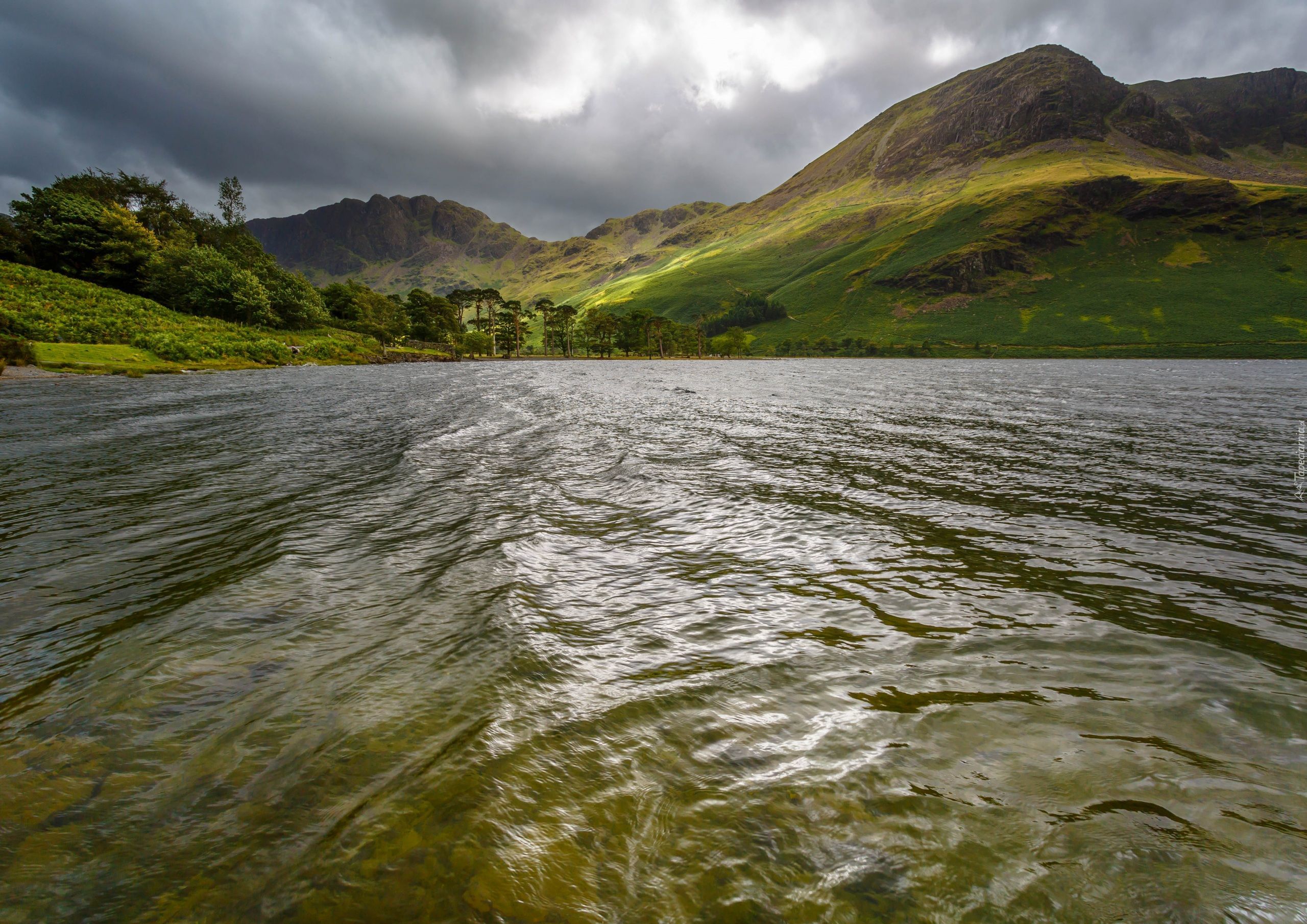 Edytor tapety: Krajobraz górskiego jeziora otoczonego drzewami