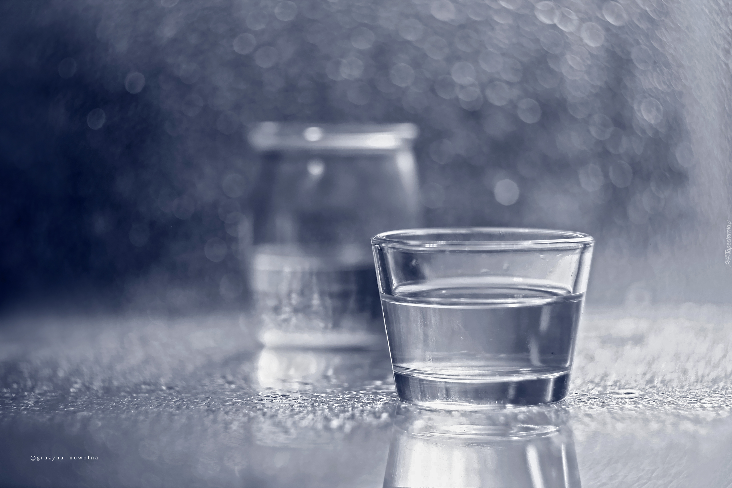 Edytor tapety: Wazoniki z wodą na rozmytym tle